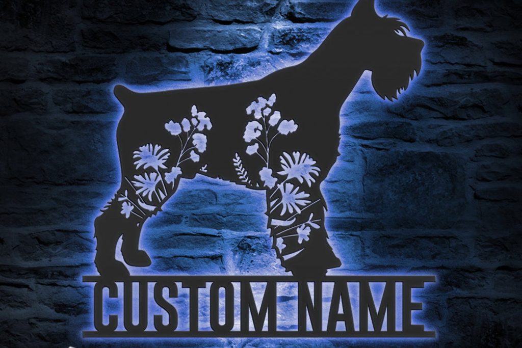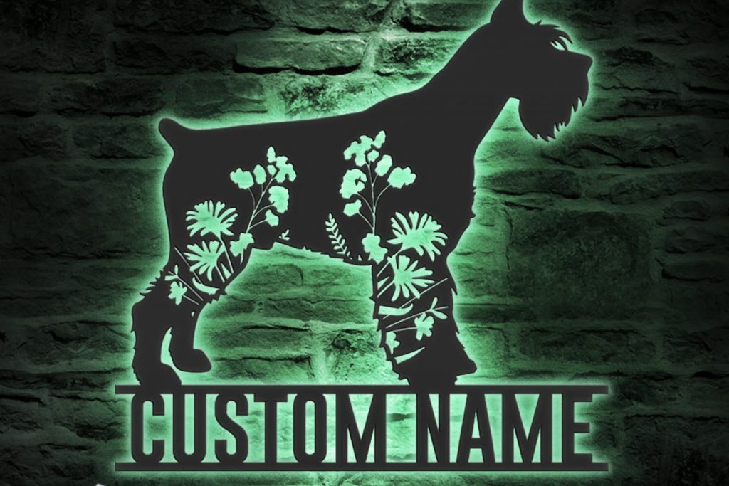 Be the first to review “Custom Floral Standard Schnauzer Metal Sign with LED – Decor”