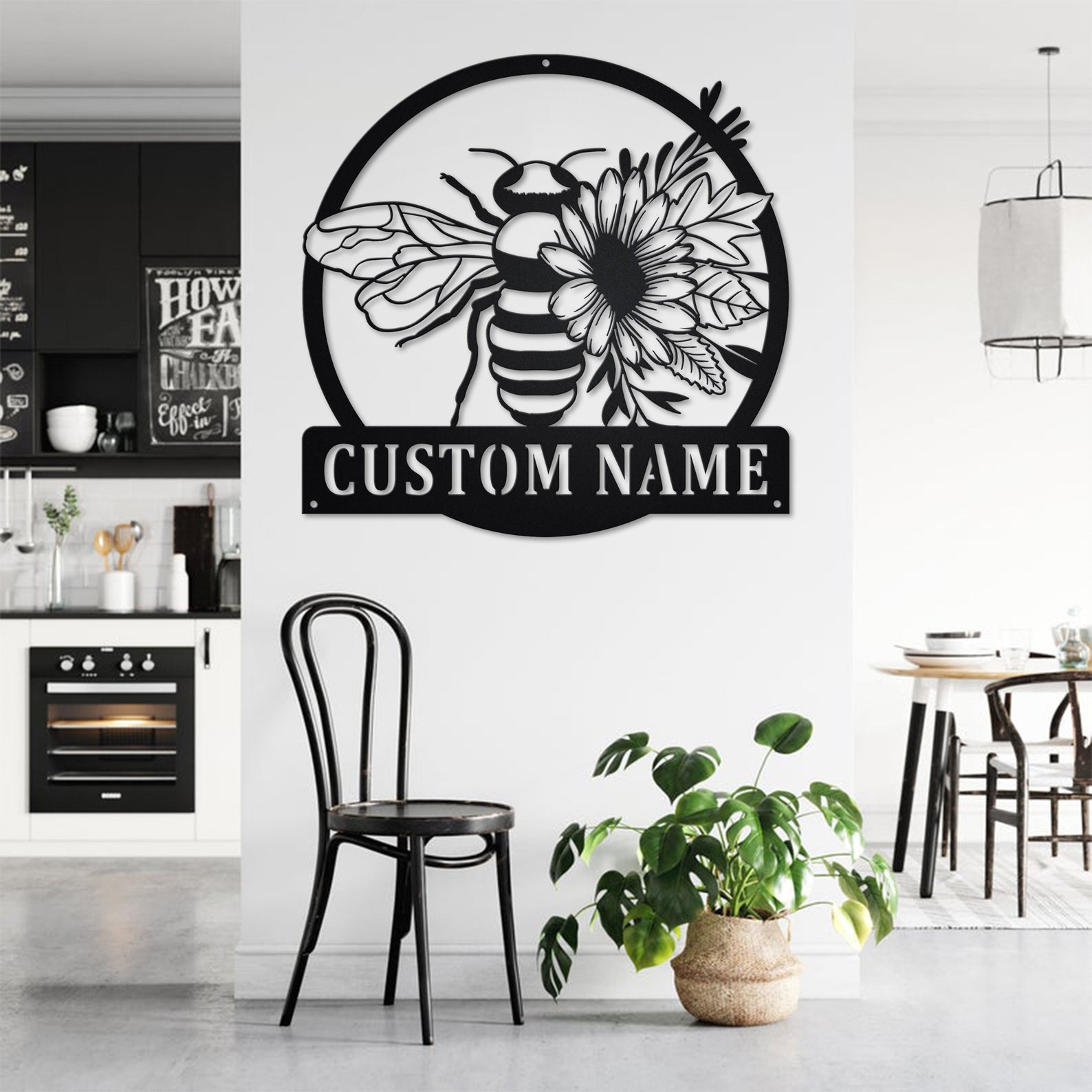 Be the first to review “Custom Flower Bee Metal Sign with LED – Room Decoration”