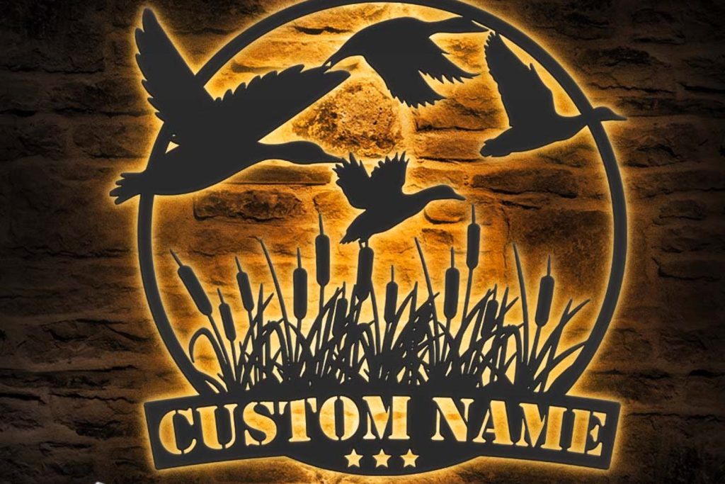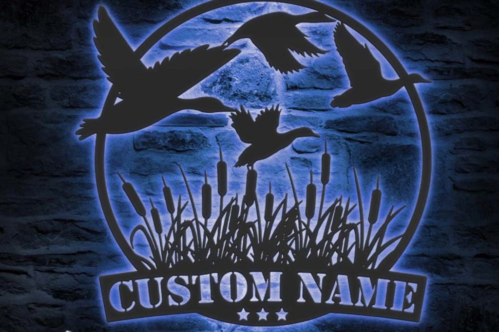 Be the first to review “Custom Flying Mallard Duck Metal Art with LED & Name”