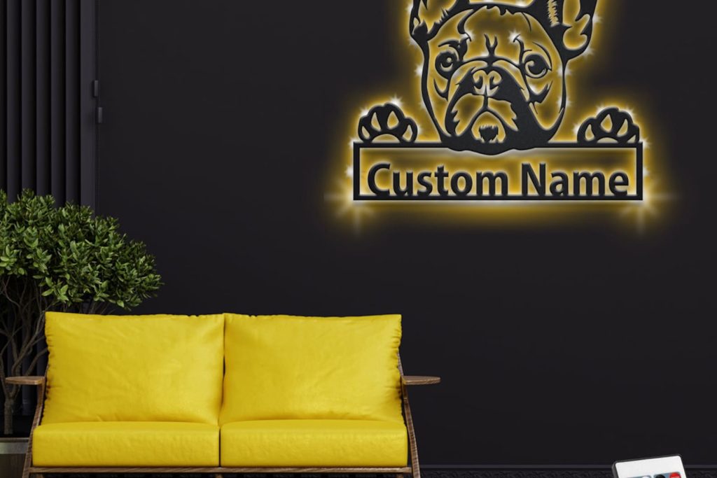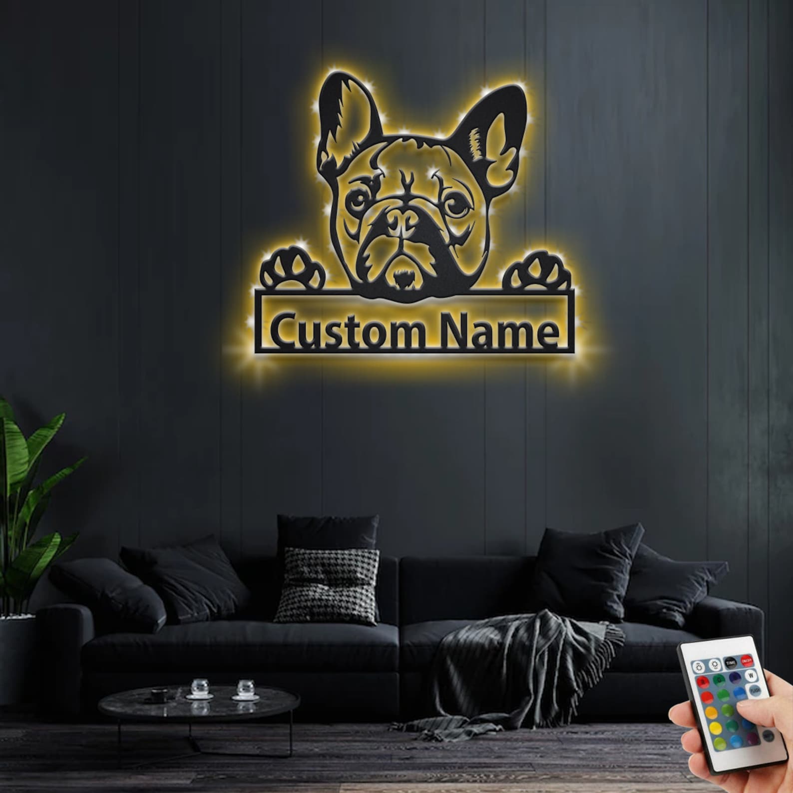 Custom French Bulldog LED Metal Art – Personalized Dog Name Sign
