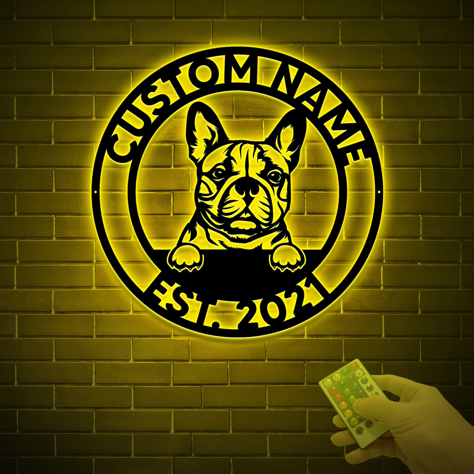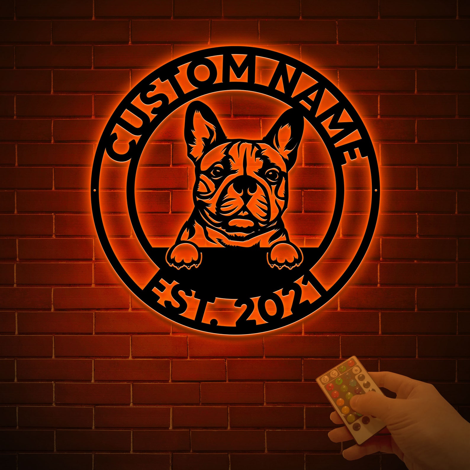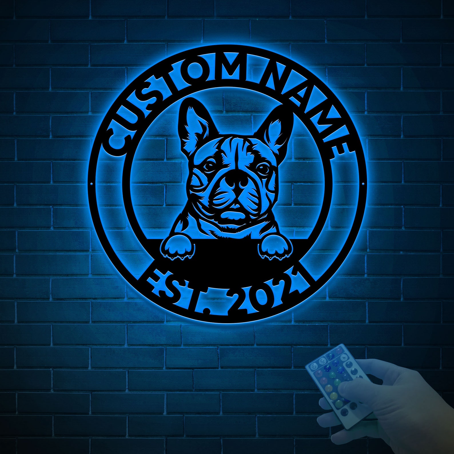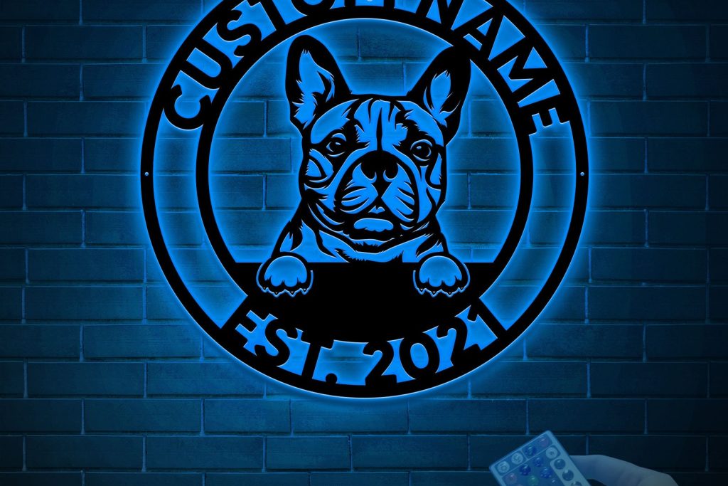 Custom French Bulldog Metal Sign with LED – Personalized Name