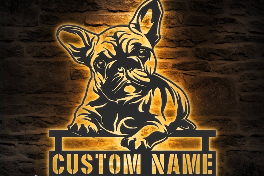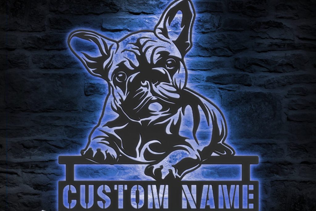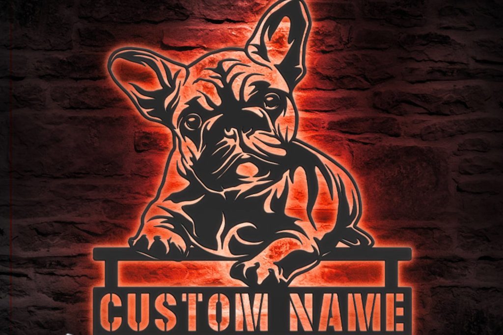 Be the first to review “Custom French Bulldog Peeking Face LED Metal Art – Dog Name Sign”