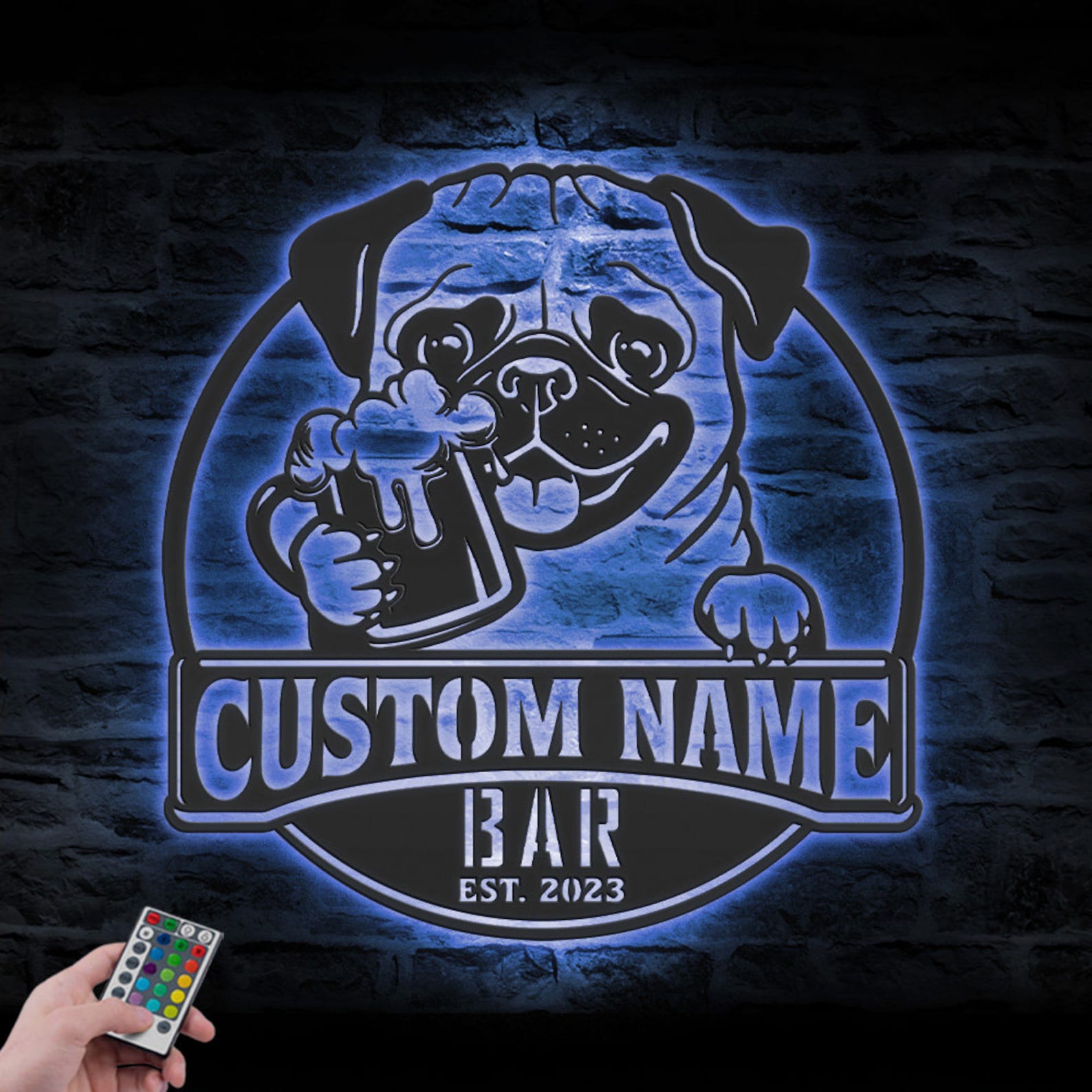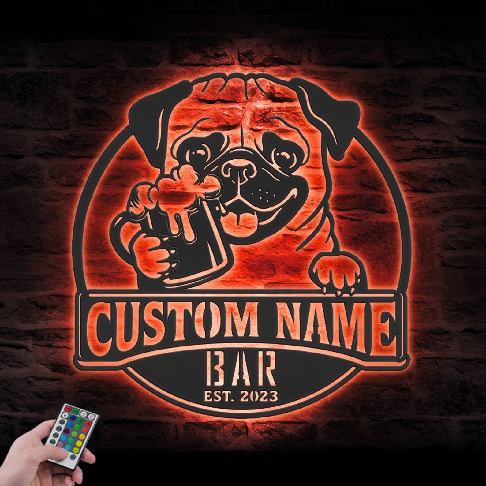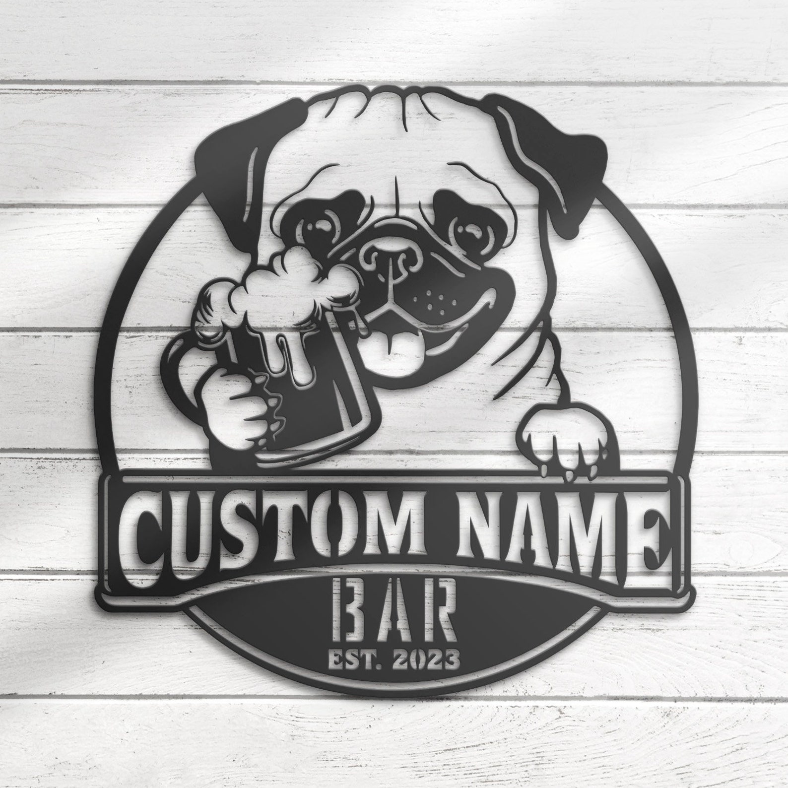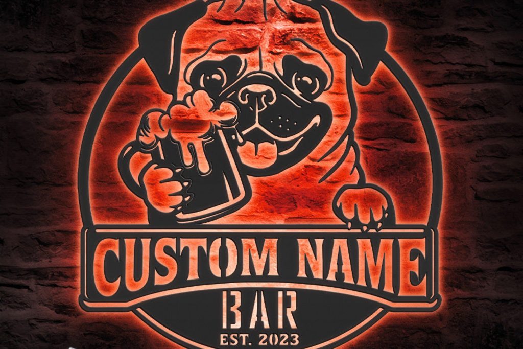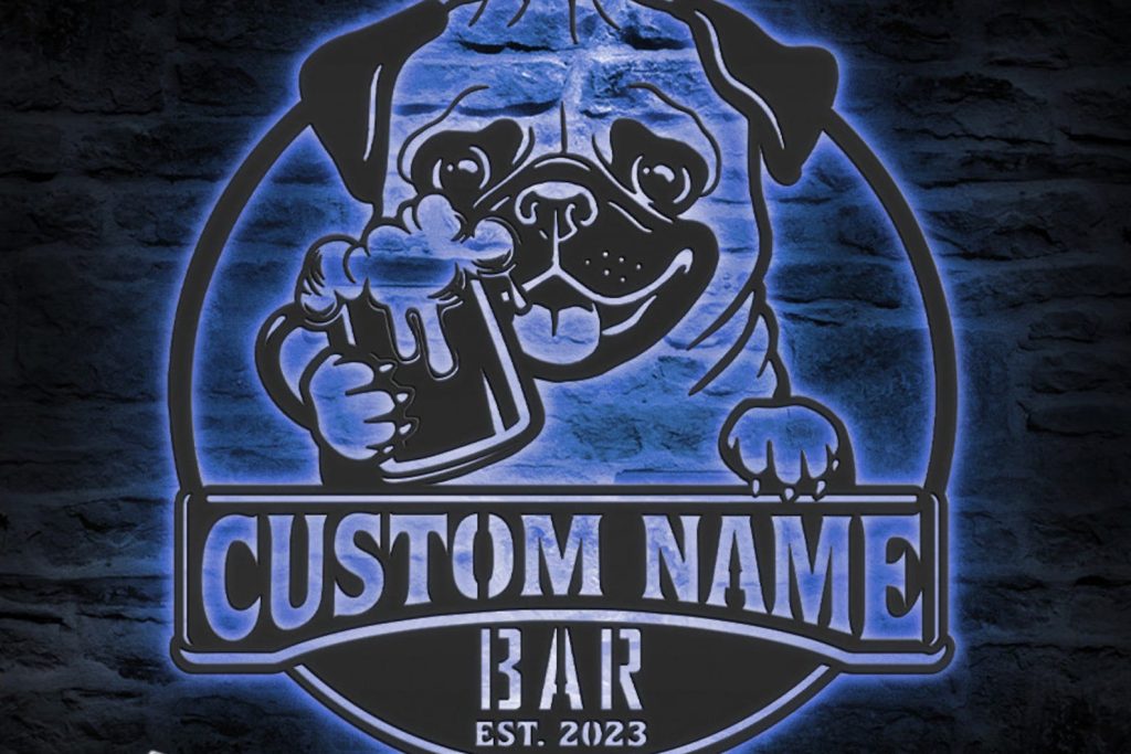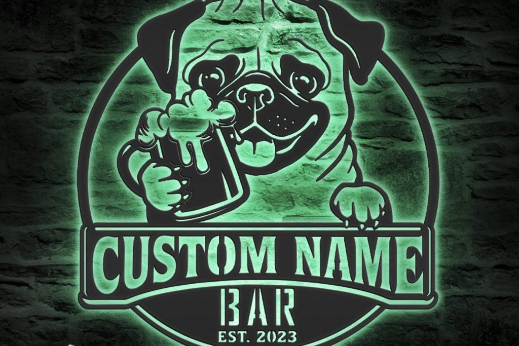 Be the first to review “Custom Funny Pug Beer Pub Metal Wall Art – LED Light, Personalized Sign”