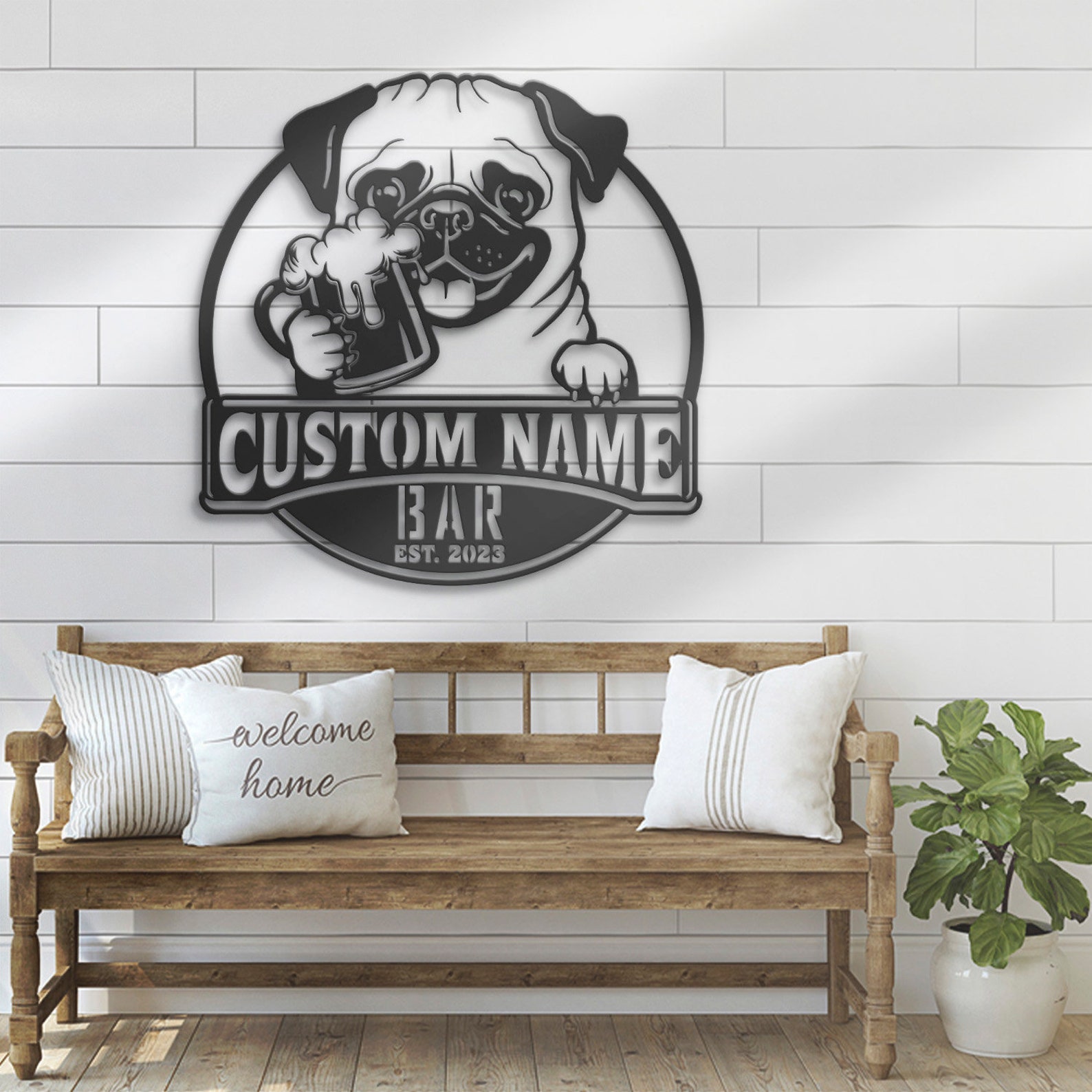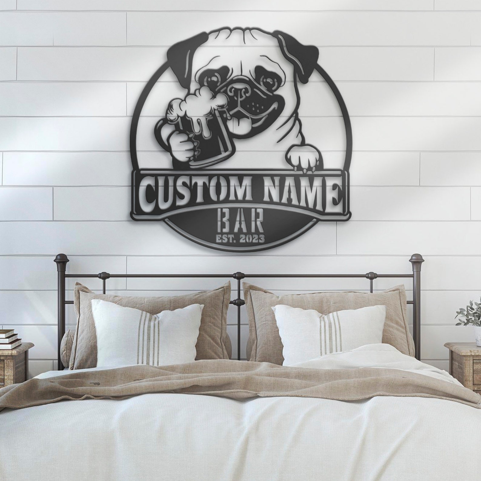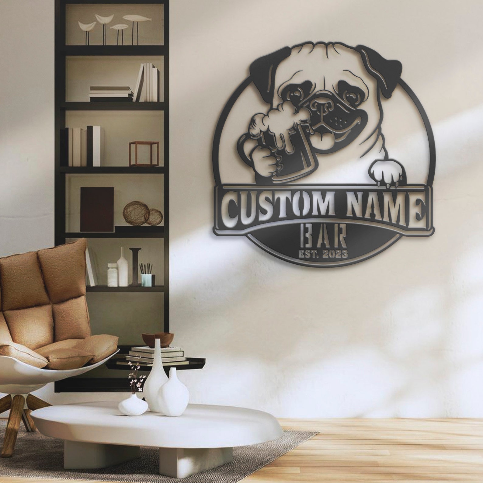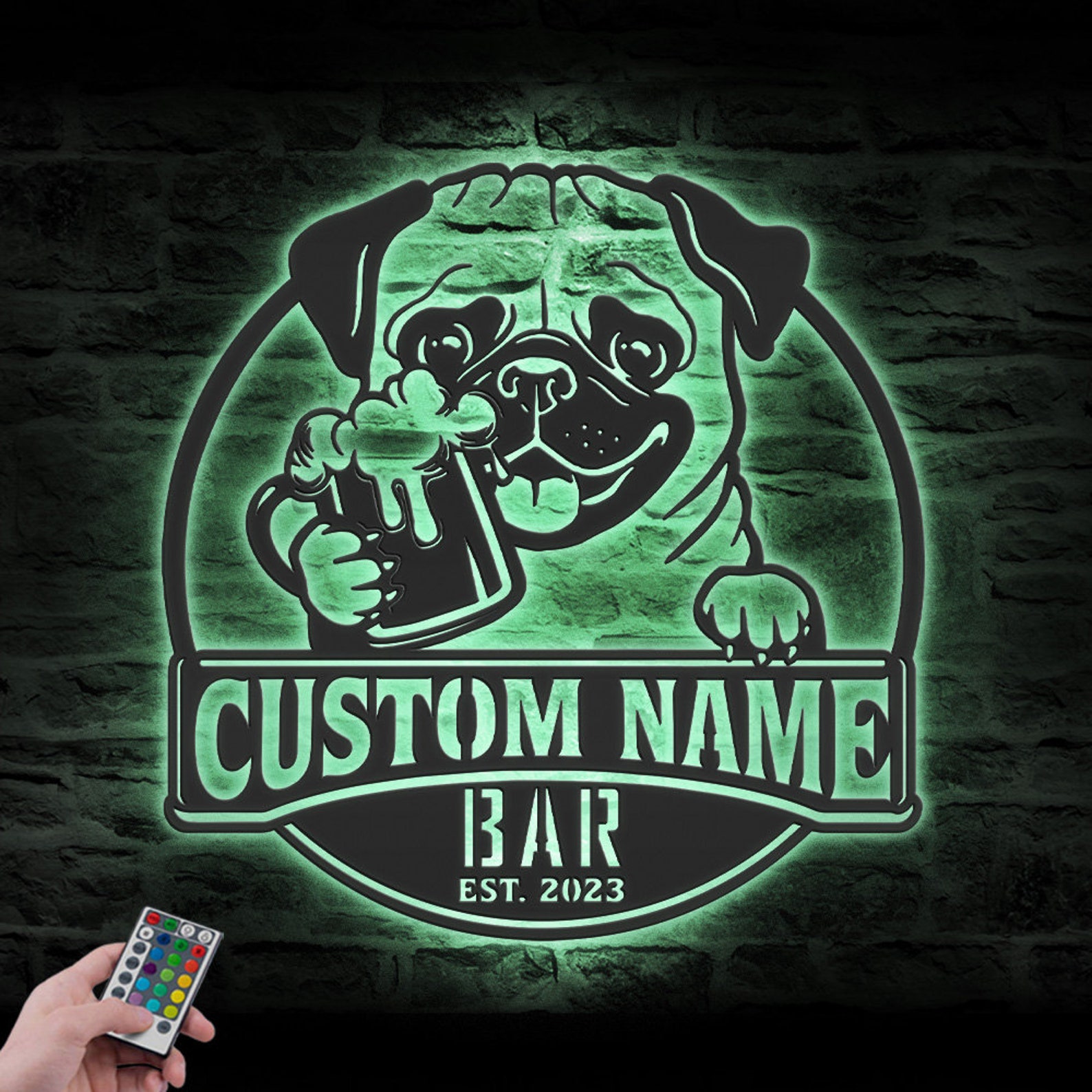 Be the first to review “Custom Funny Pug Beer Pub Metal Wall Art – LED Light, Personalized Sign”