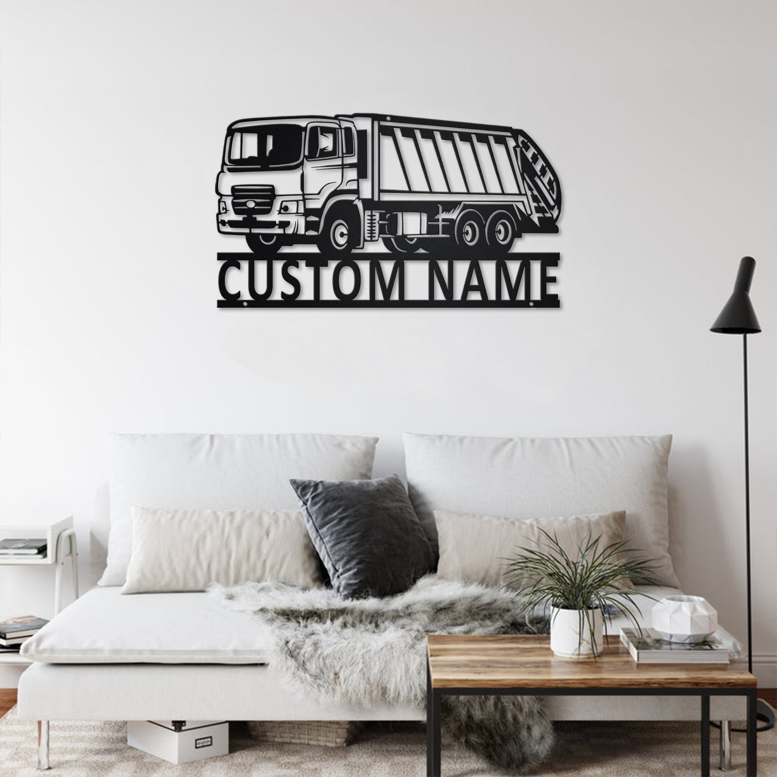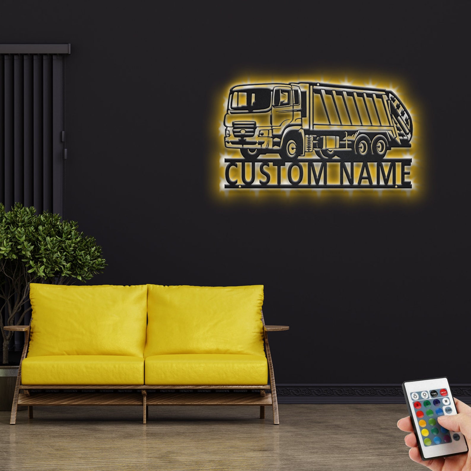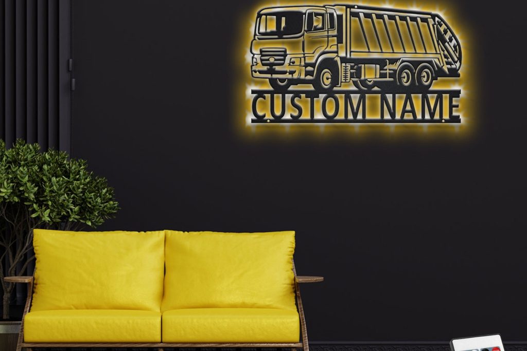 Custom Garbage Truck Metal Sign with LED – Room Decoration