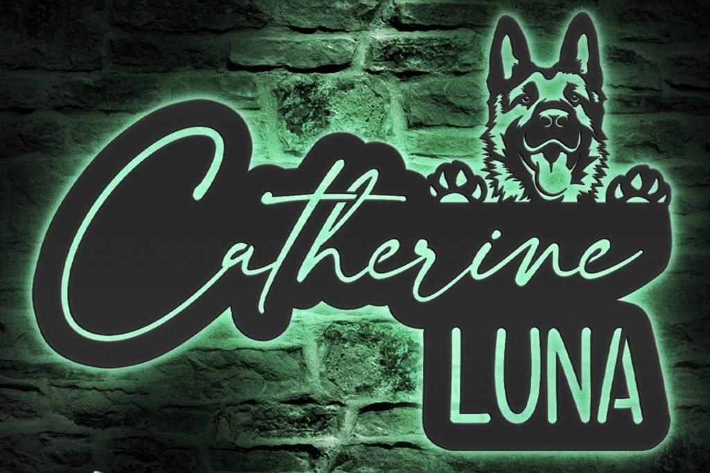 Custom German Shepherd Metal Sign with LED – Pet Decor