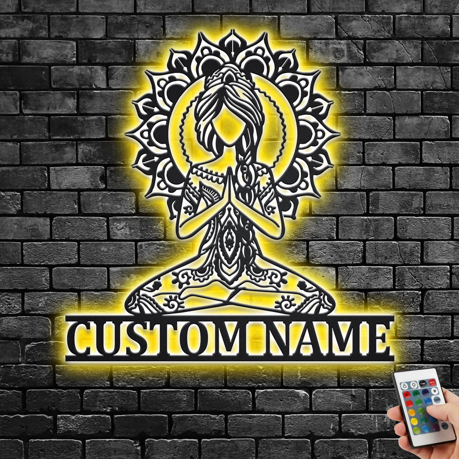 – Remote control: You can use the remote to turn the lights on and off, change the color to one of 16 vibrant colors, adjust brightness, cycle through the colors and set a timer.