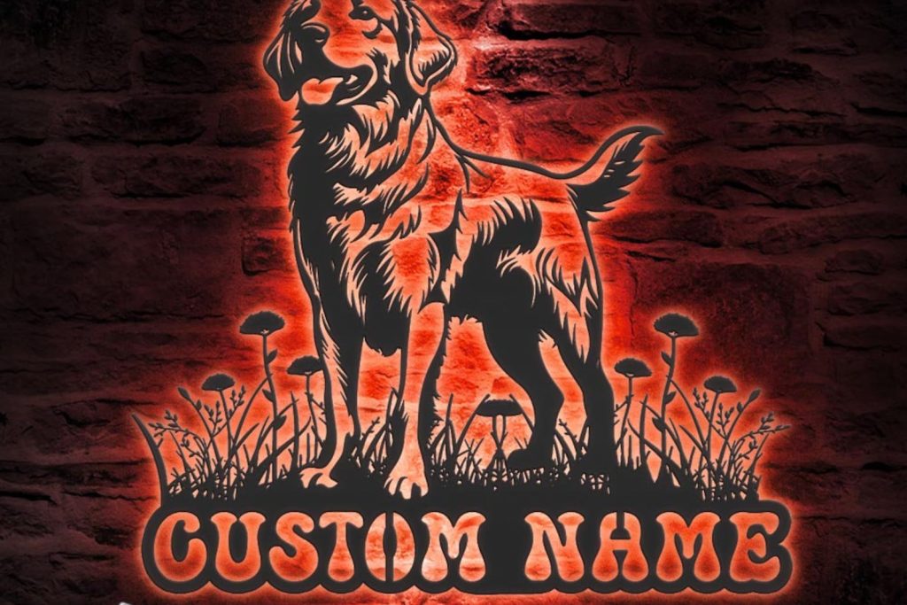 Custom Golden Labrador Metal Sign with LED – Nursery Decor