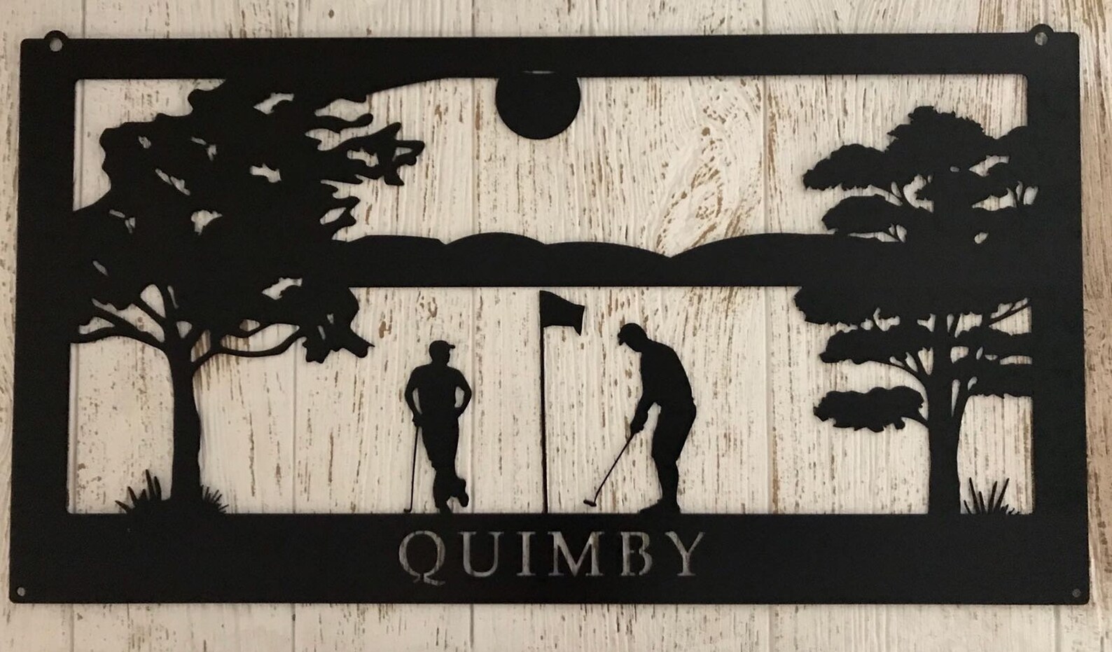 Rustic, personalized metal sign with . Measures 36" across by 19" tall, or 4ft x 26"