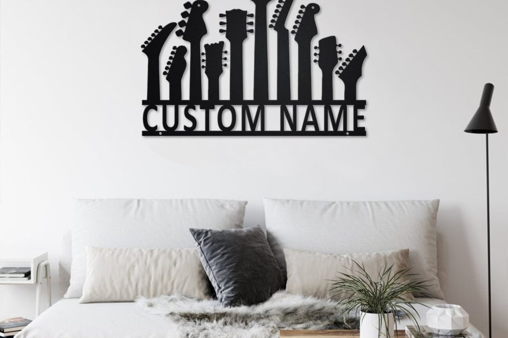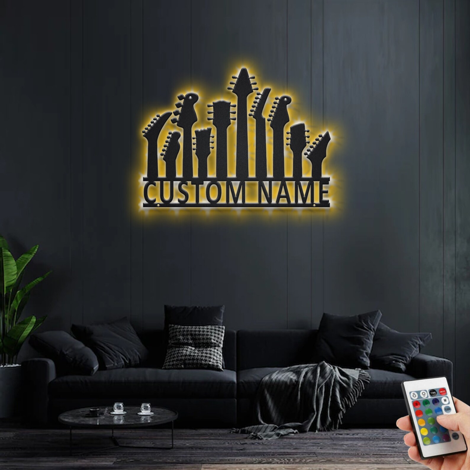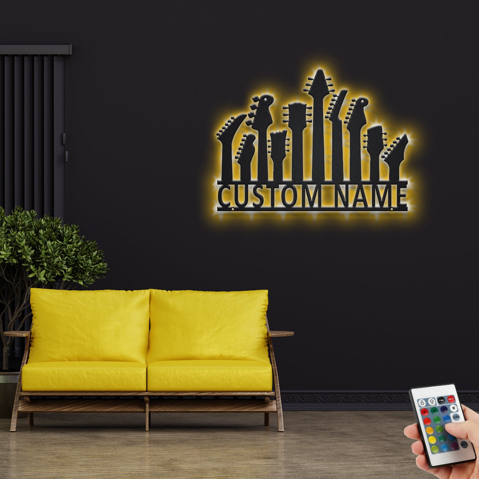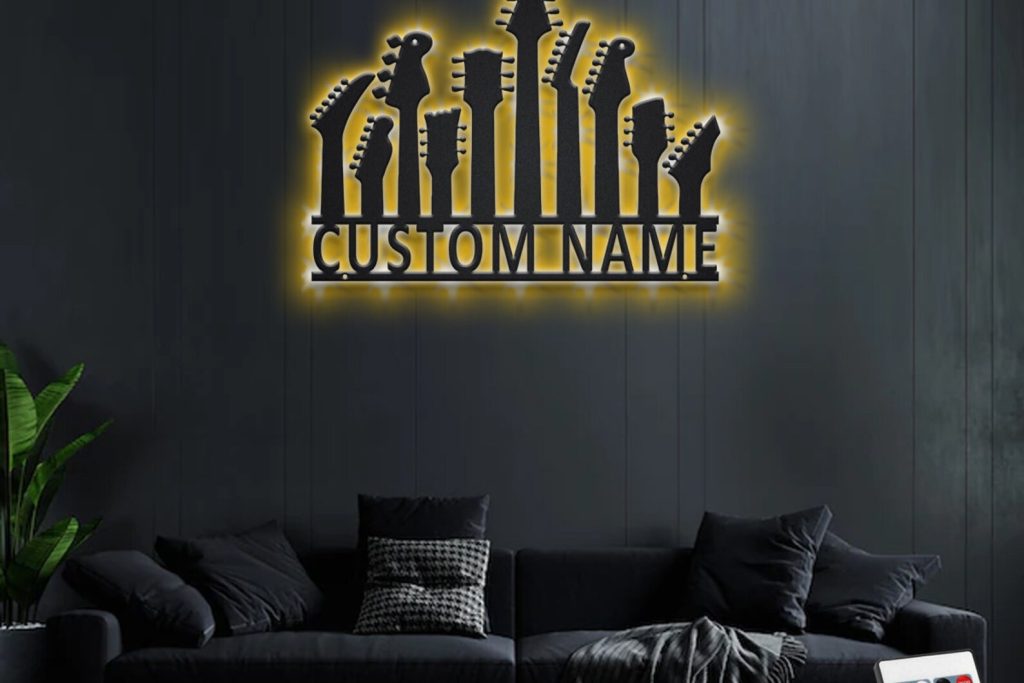 Custom Guitar Neck Metal Sign with LED – Guitarist Decor