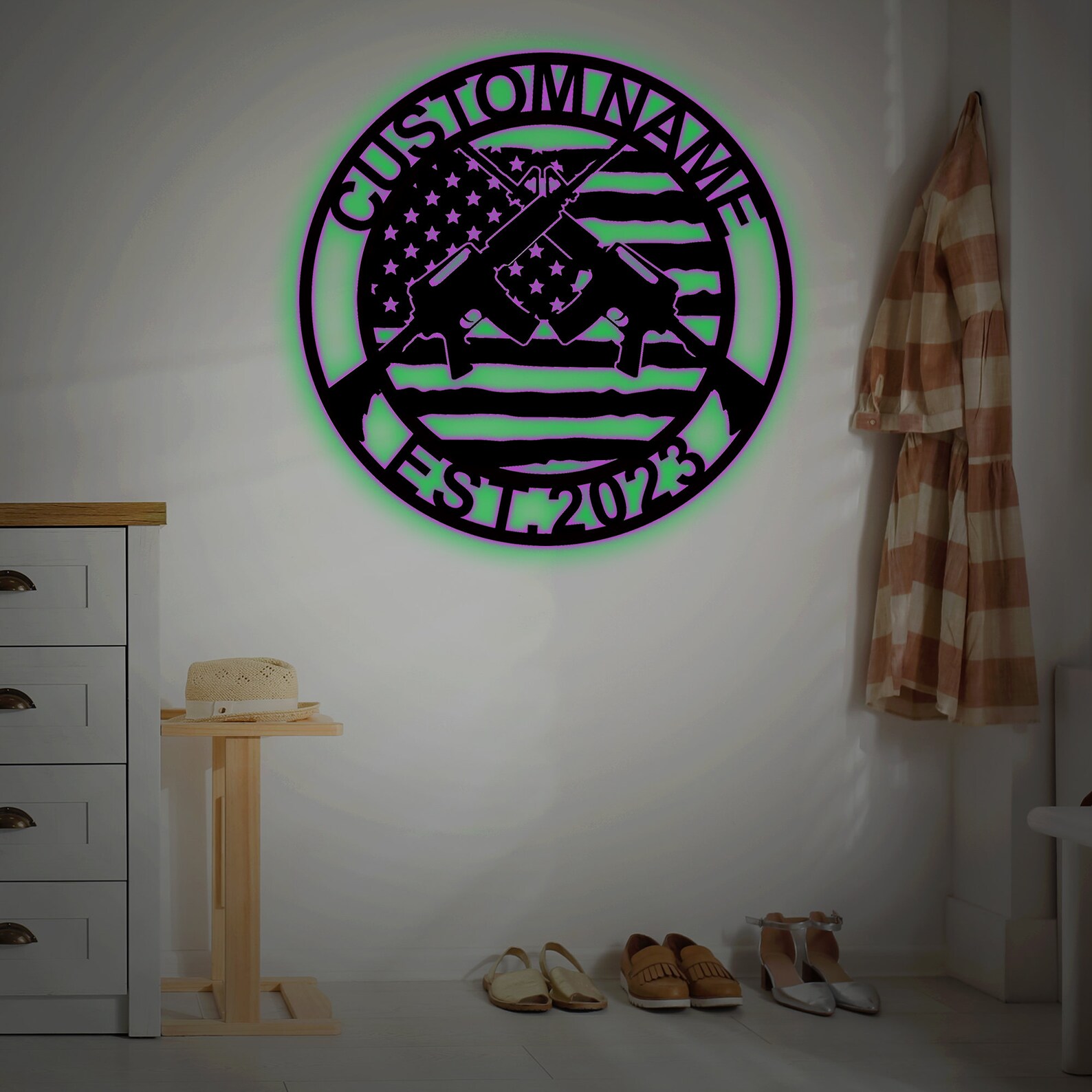 Be the first to review “Custom Gun Metal Wall Sign with LED Light”