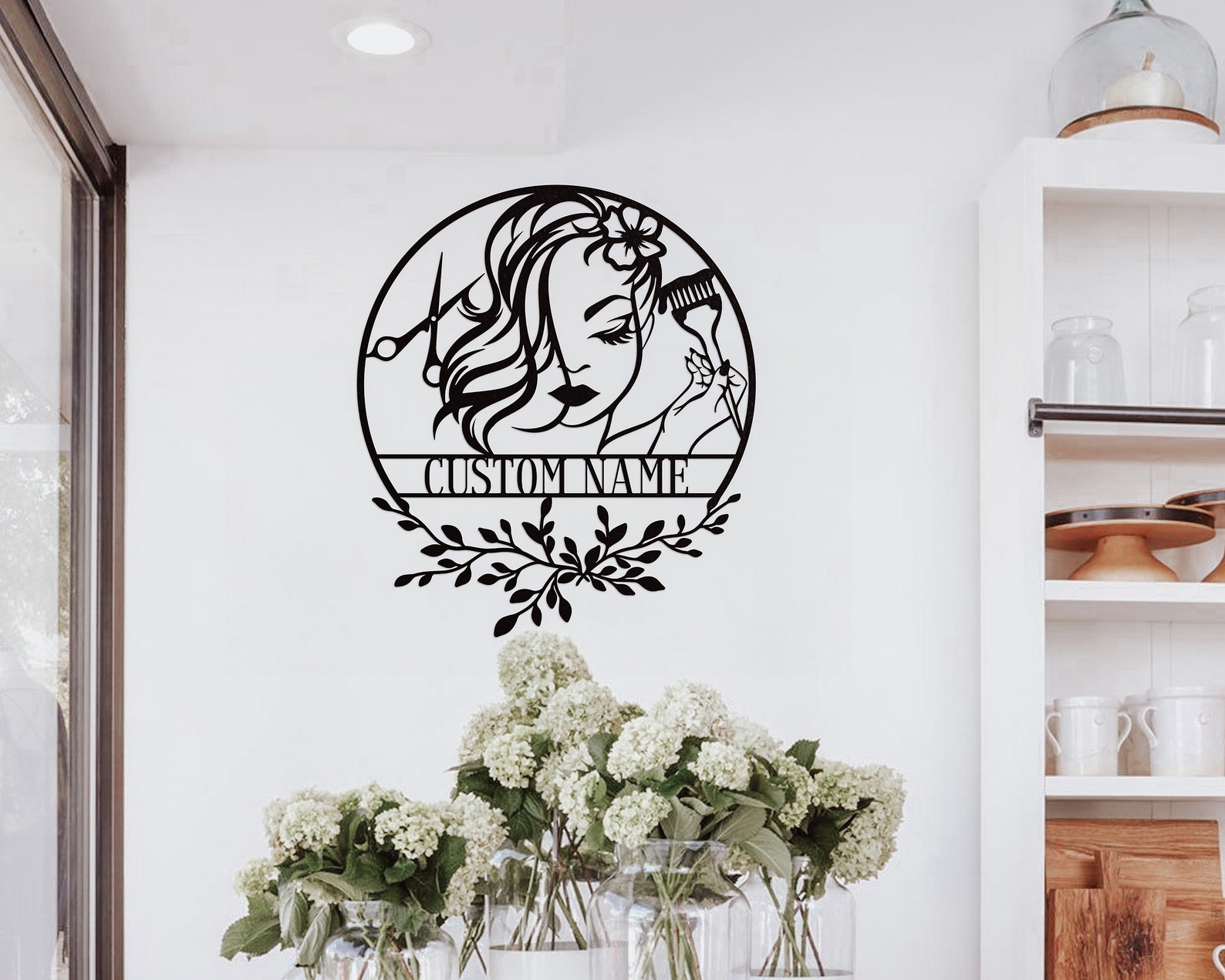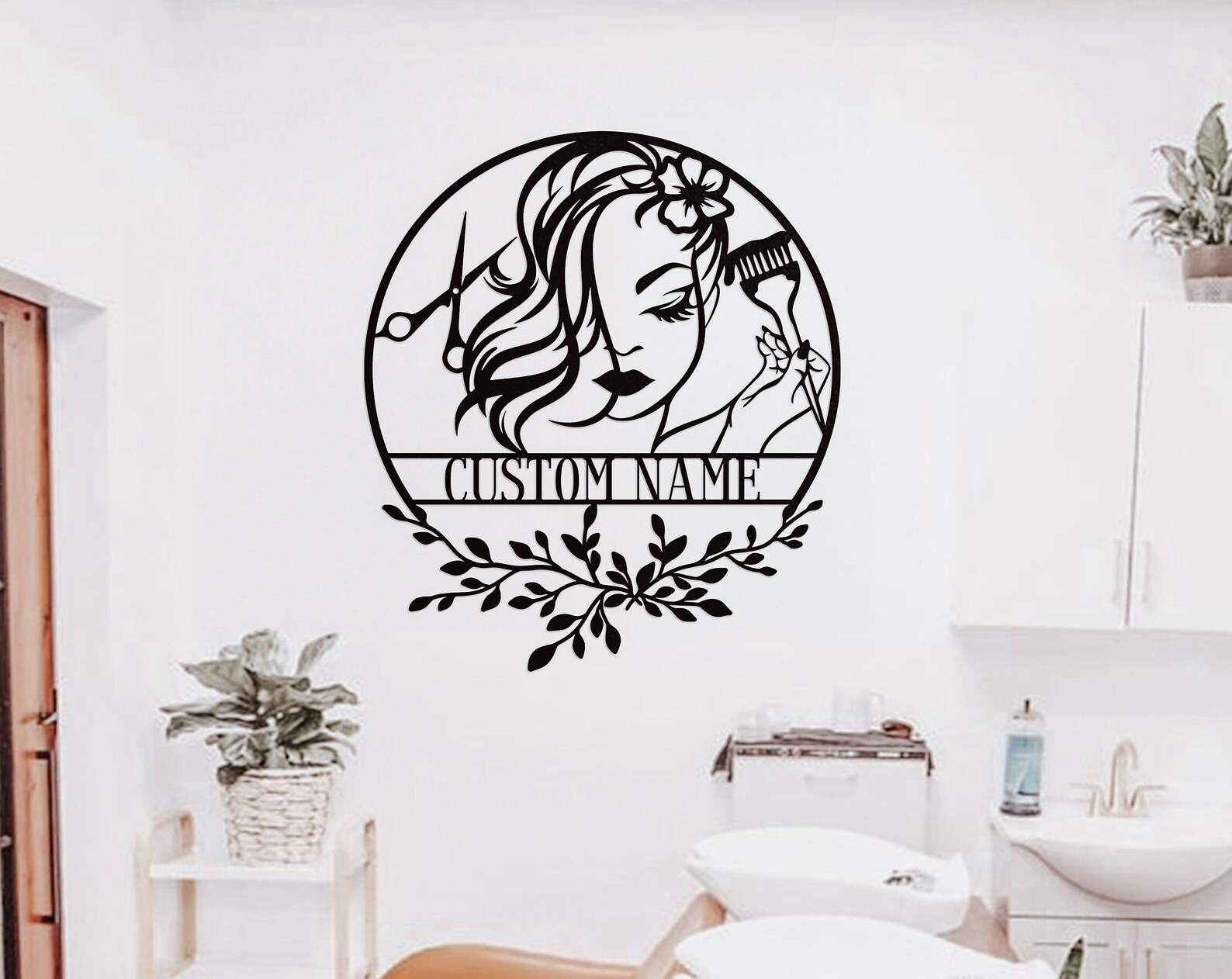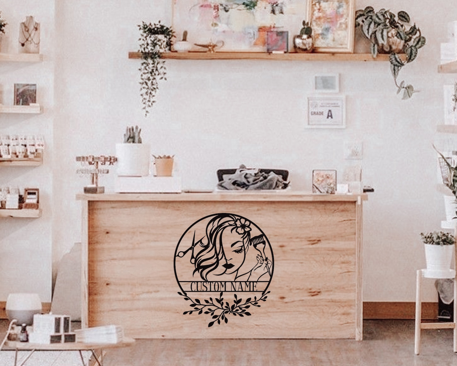 Custom Hair Dresser Metal Sign, Floral Hair Salon Wall Art, Personalized Hair Stylist Name Sign, Gift For Shop, Business Logo, Shop Decor, Name Plaque, Iron Gift for Woman, Wall Decor For Her, Birtday Gift, Minimalist Wall Decor, Gift for Her