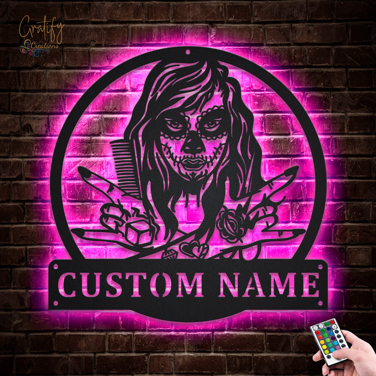 Be the first to review “Custom Hair Hustler Metal Sign with LED Lights V4”