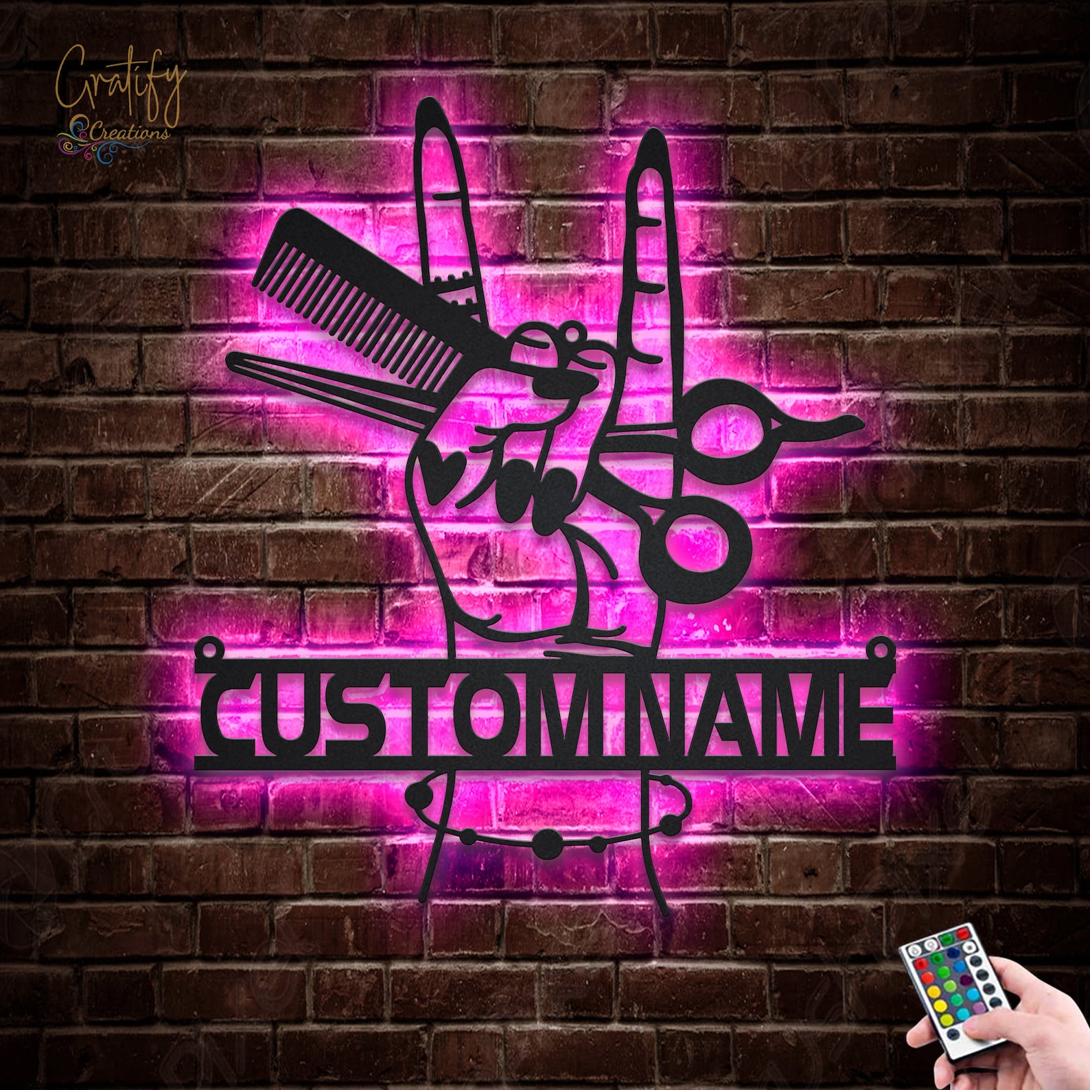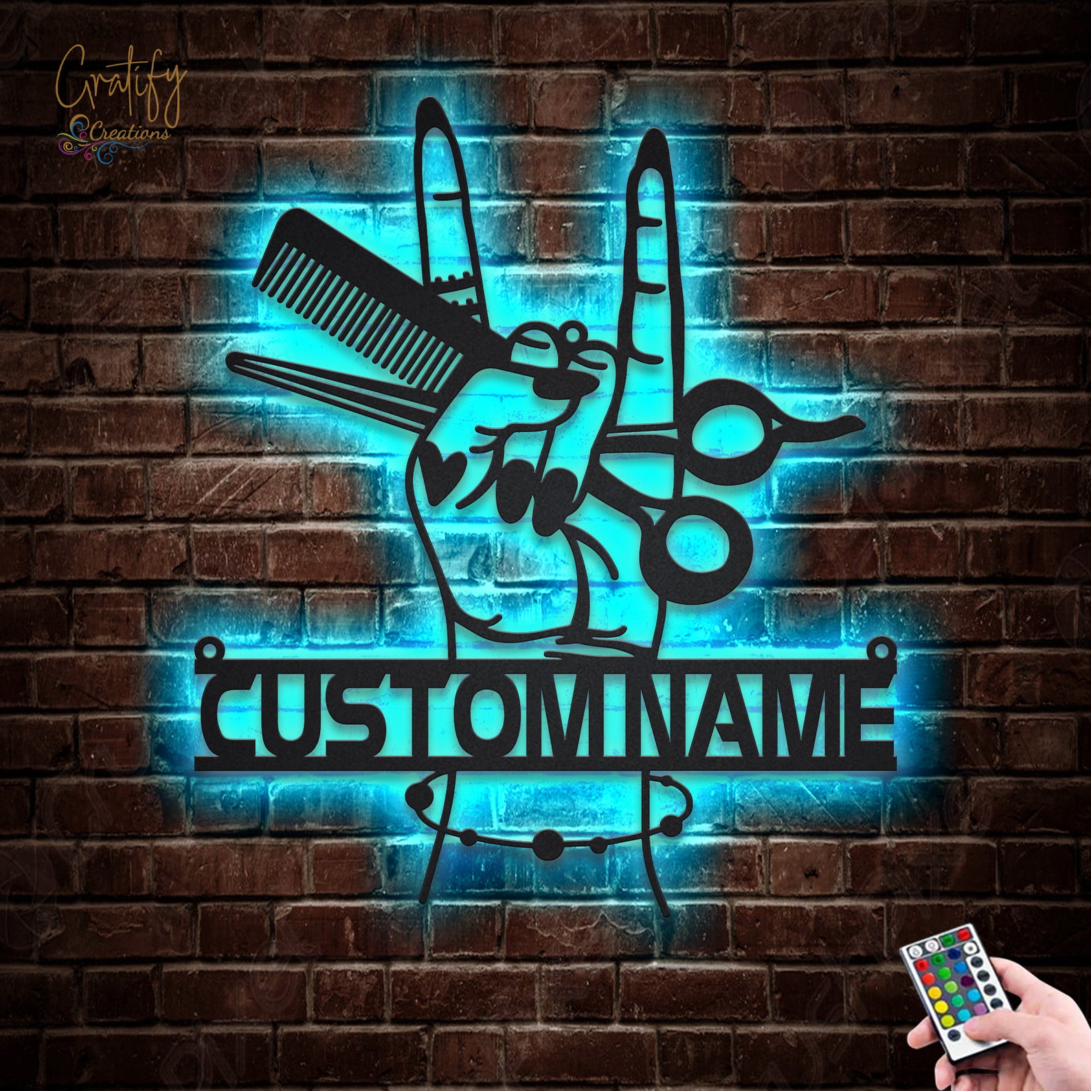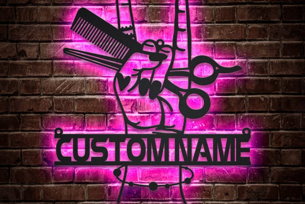 Be the first to review “Custom Hair Hustler Metal Sign with LED Lights V8”