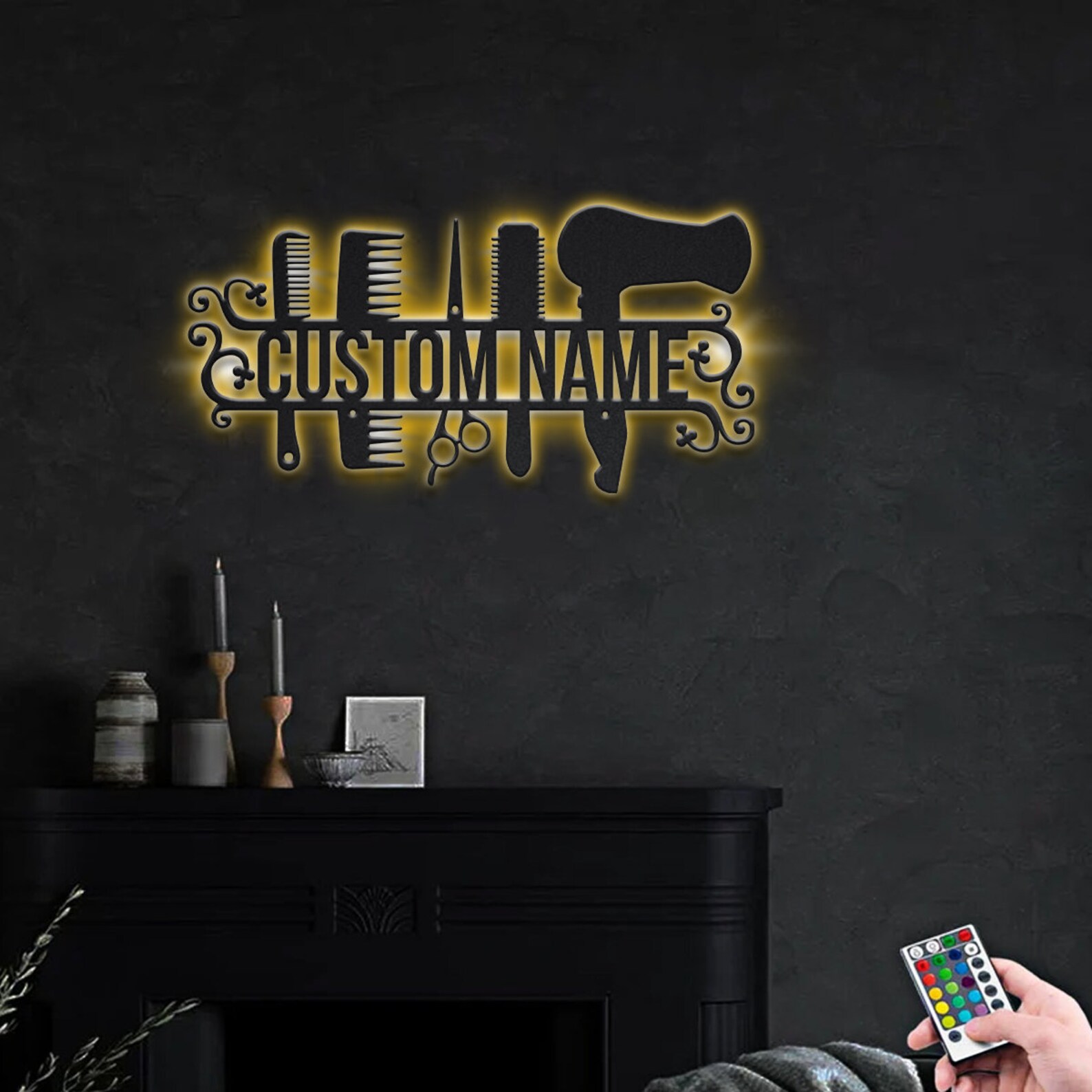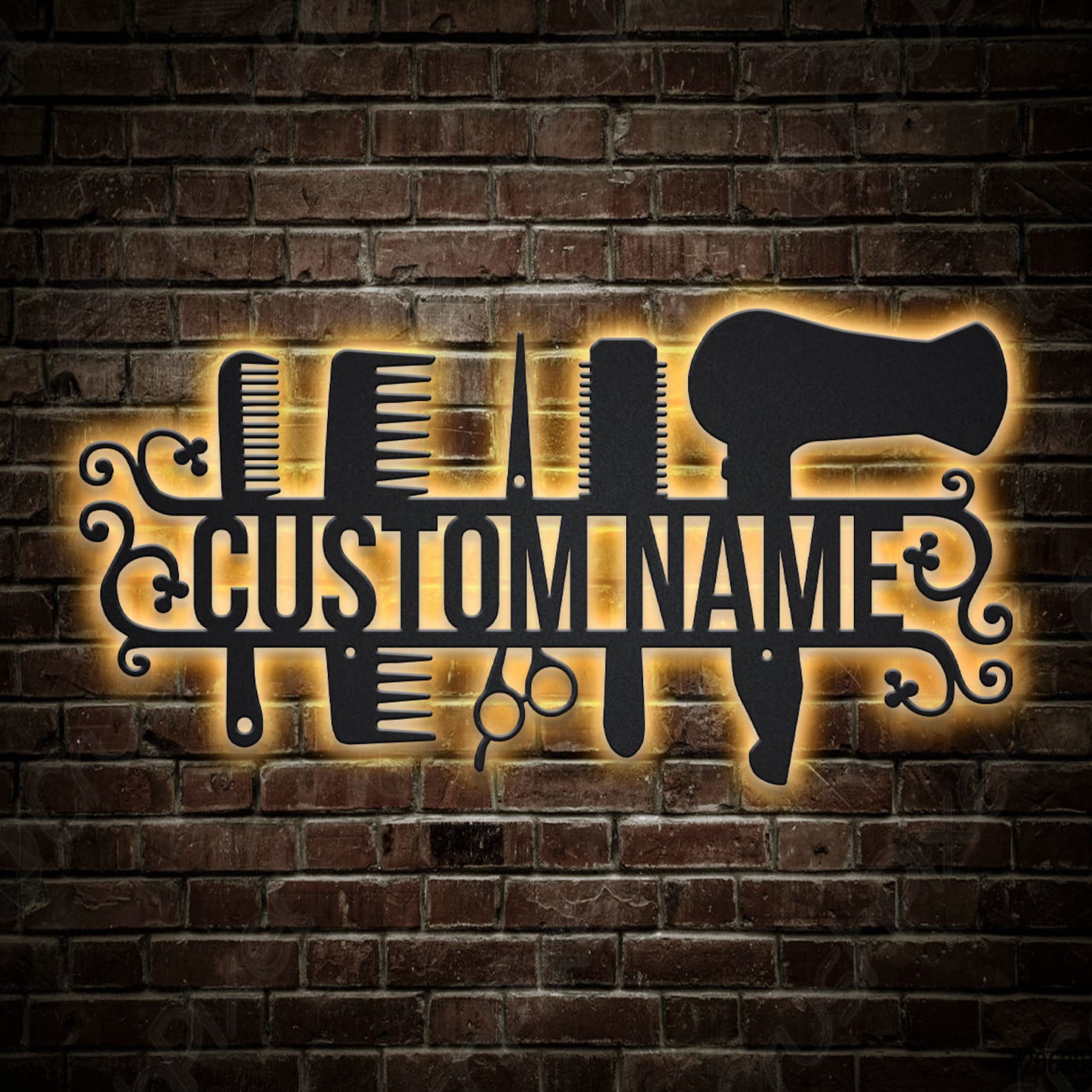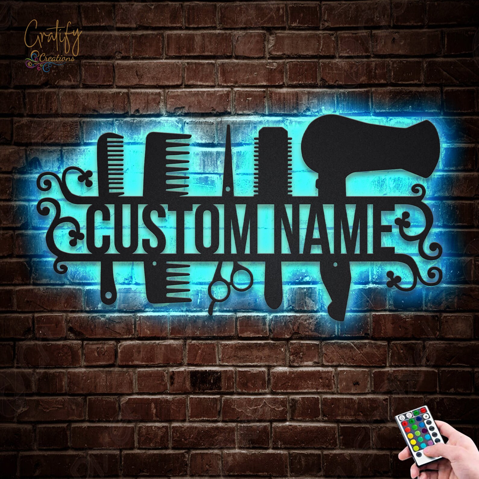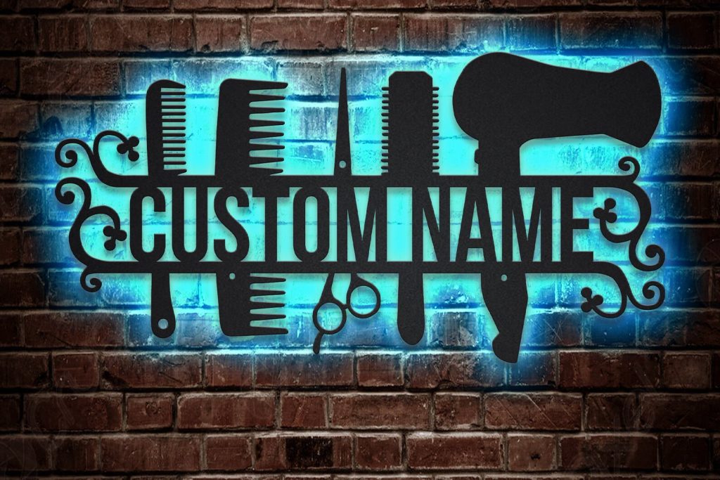 Be the first to review “Custom Hairdresser Tools Metal Sign with LED Lights”