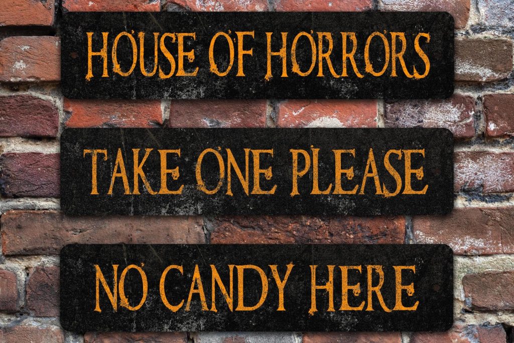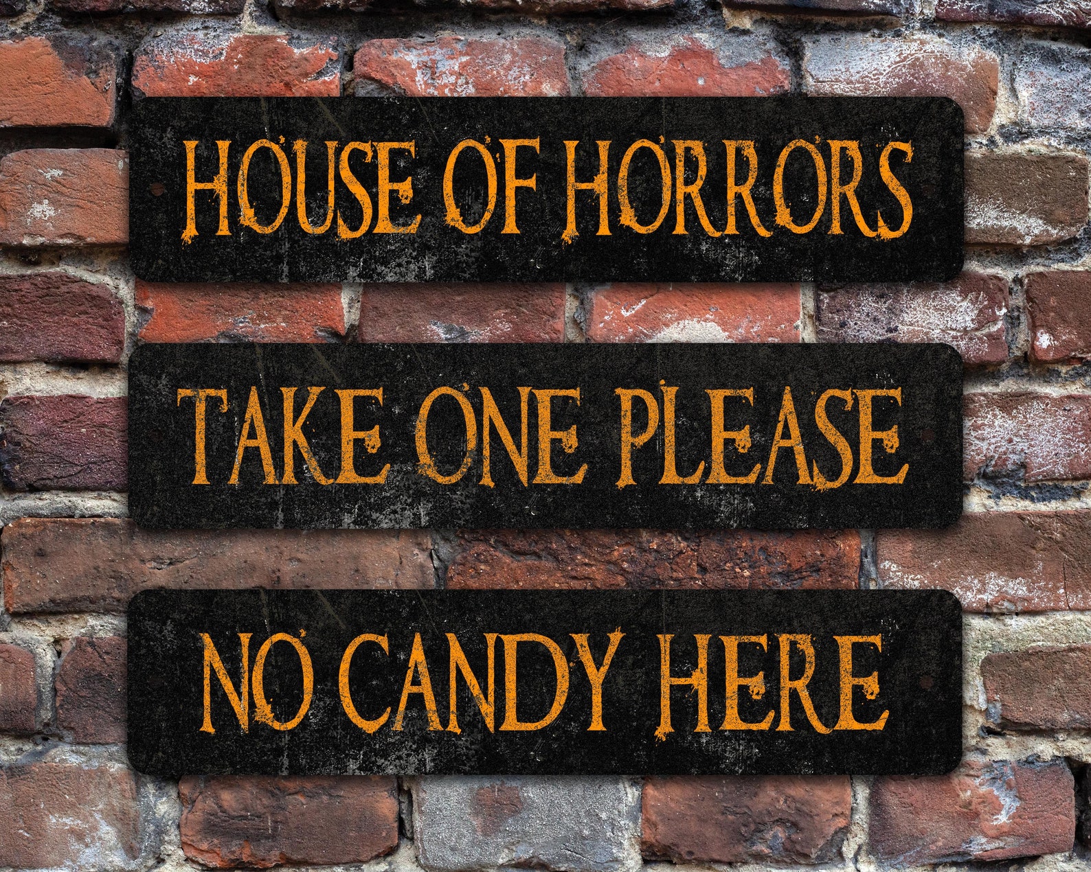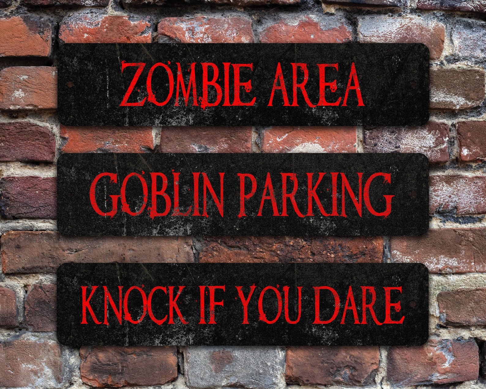 Let your imagination run wild with these super affordable Halloween vintage-style, weathered-look street signs. Light weight and durable, these nifty signs are made to order in the USA. These custom metal signs will look perfect with your creepy Halloween display.