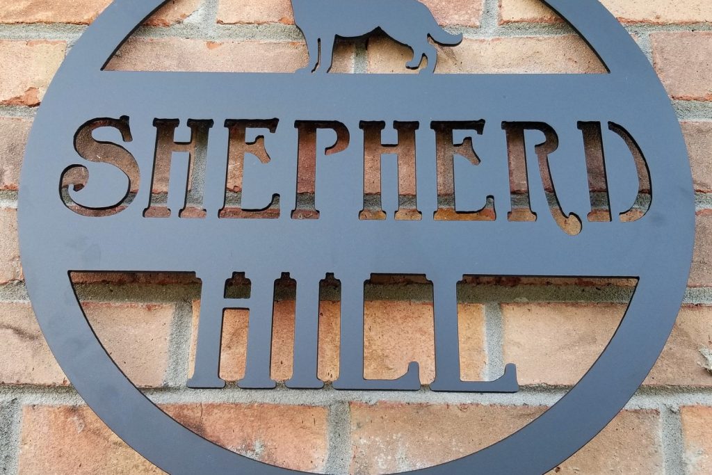 This hanging dog sign is a great gift for the dog lover in your life. Customize this metal sign with a dog breed and add a family name or the name of a property to make this a unique piece for someone whose dog is a member of the family.