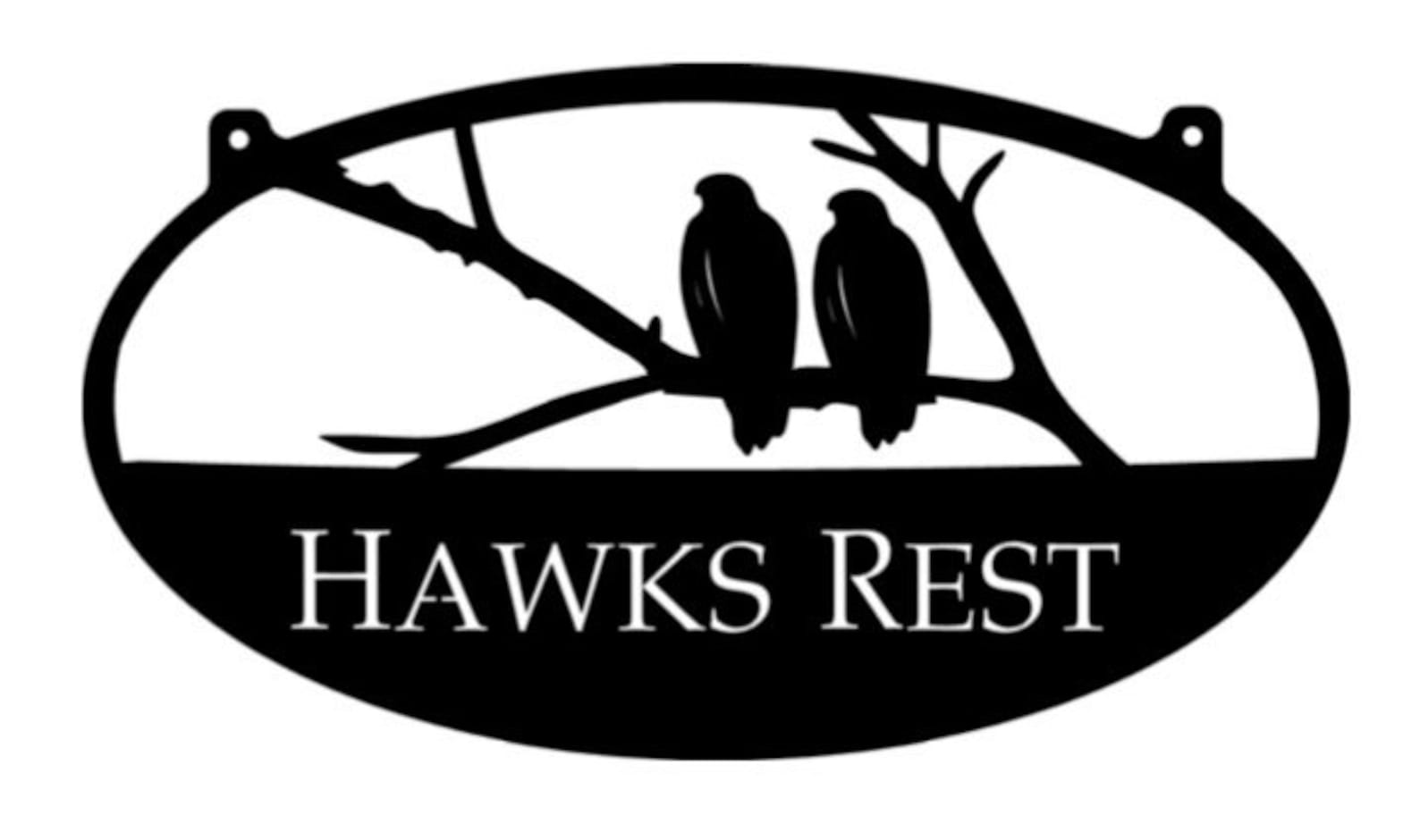 Gorgeous metal sign with hawk measures 30" " or 36 or 48" .. Finish is a durable baked on powder coat finish. Also available in our gorgeous patinas with baked on clear coat