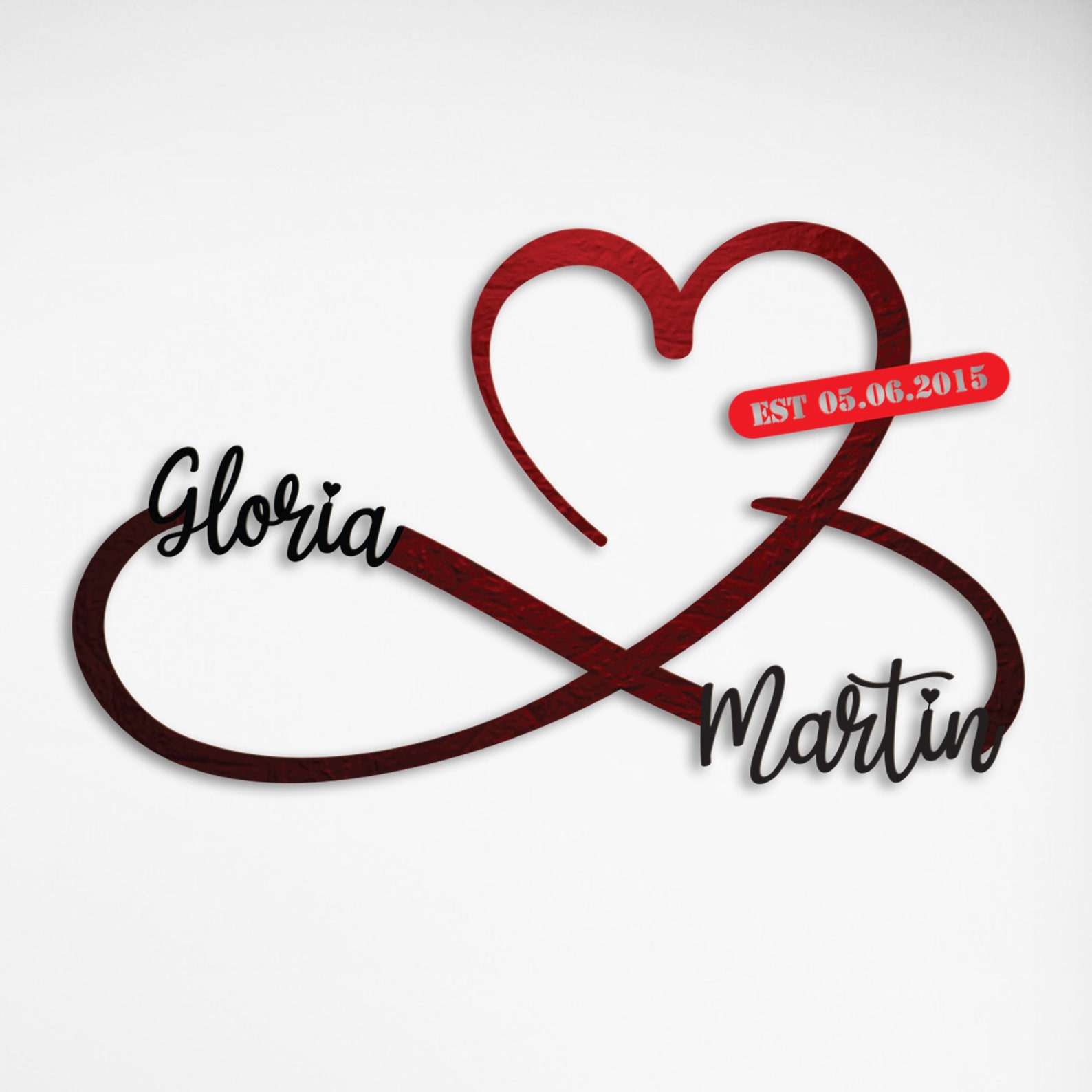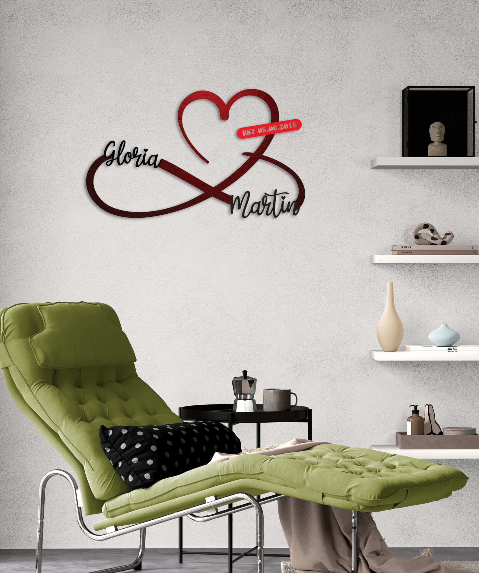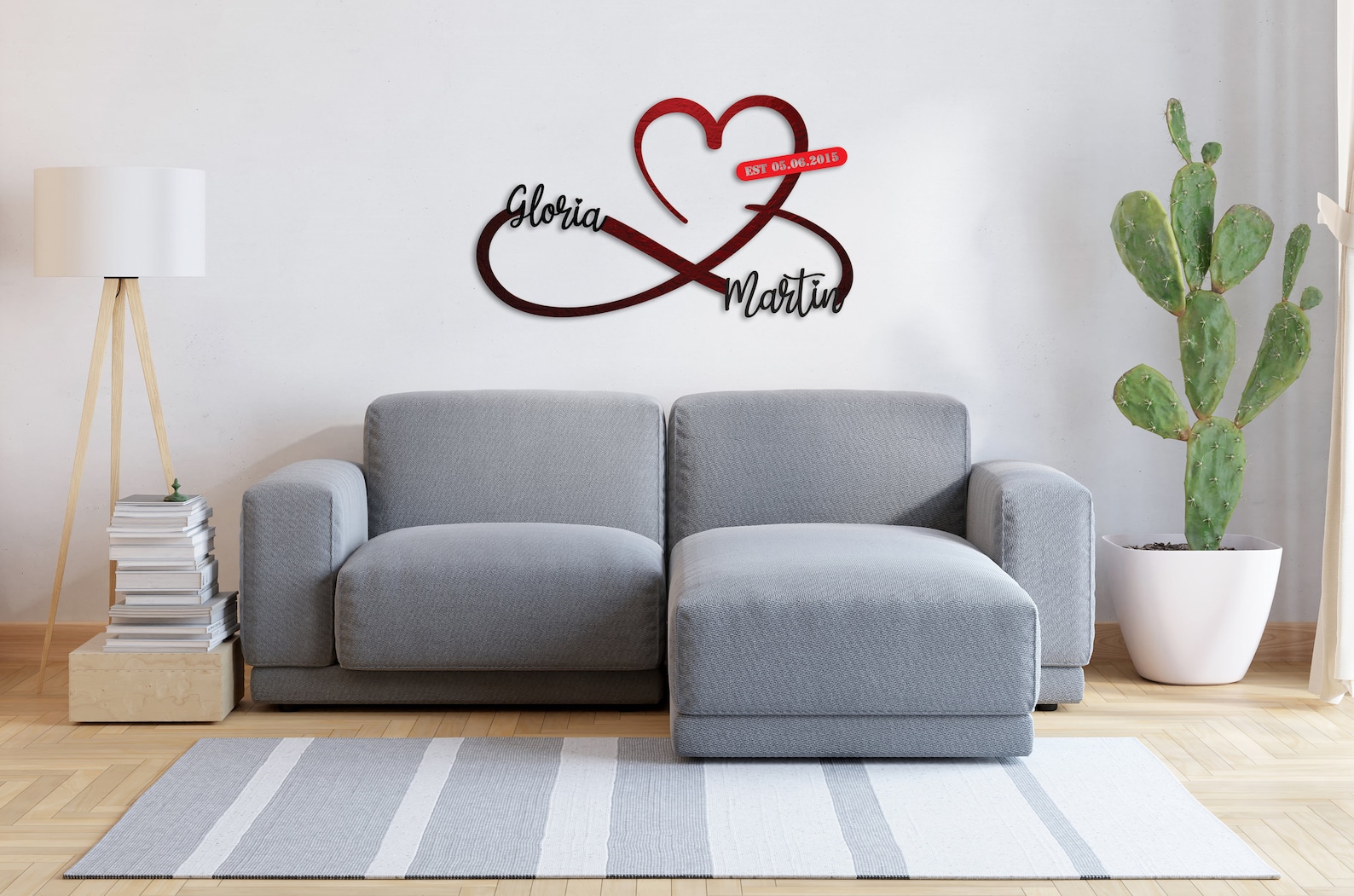 Metal Large Customized Names and Date, Heart and Infinity, Custom Metal Wall Art, Home Decoration, Wedding, New Home, Housewarming Gift.