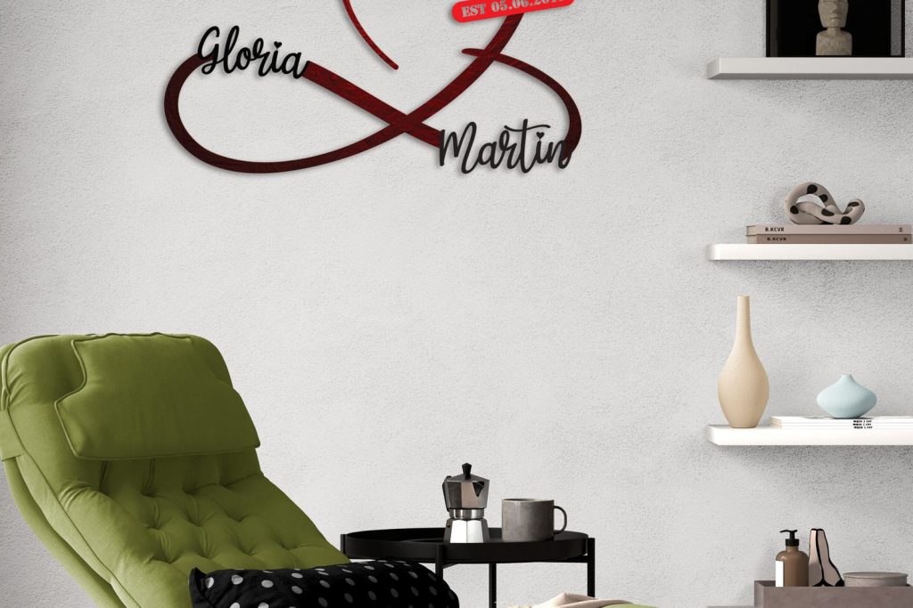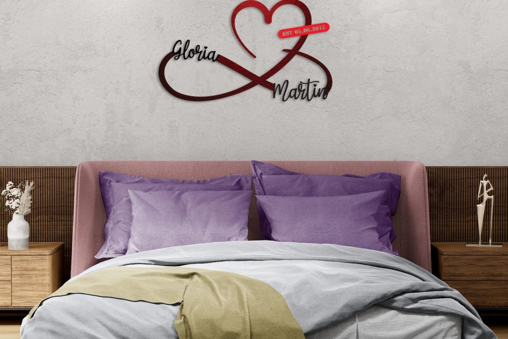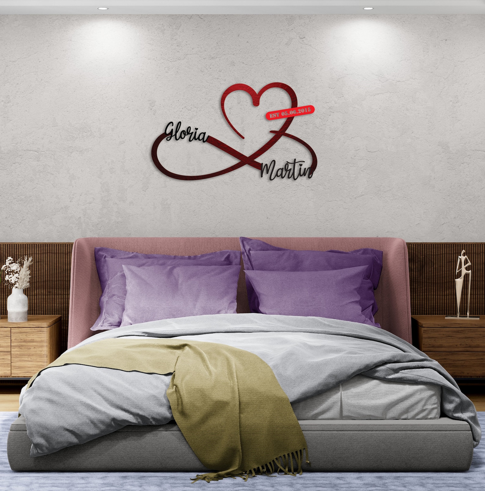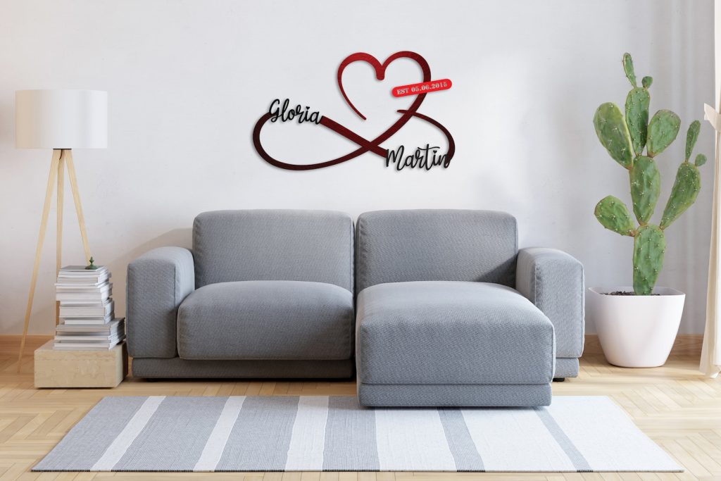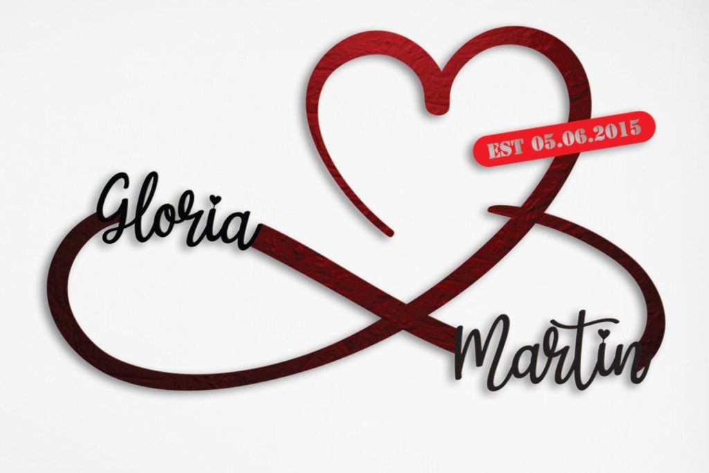 Metal Large Customized Names and Date, Heart and Infinity, Custom Metal Wall Art, Home Decoration, Wedding, New Home, Housewarming Gift.