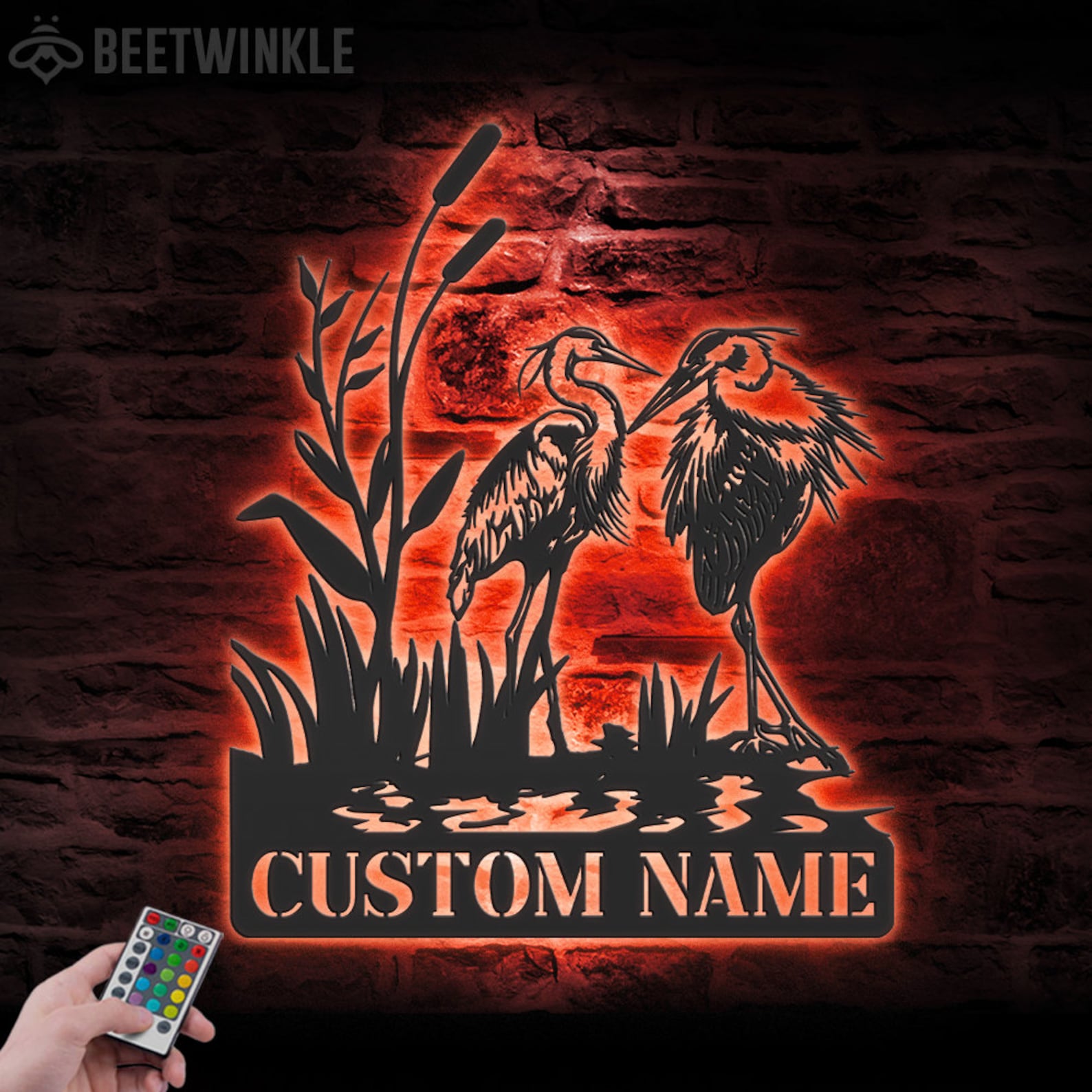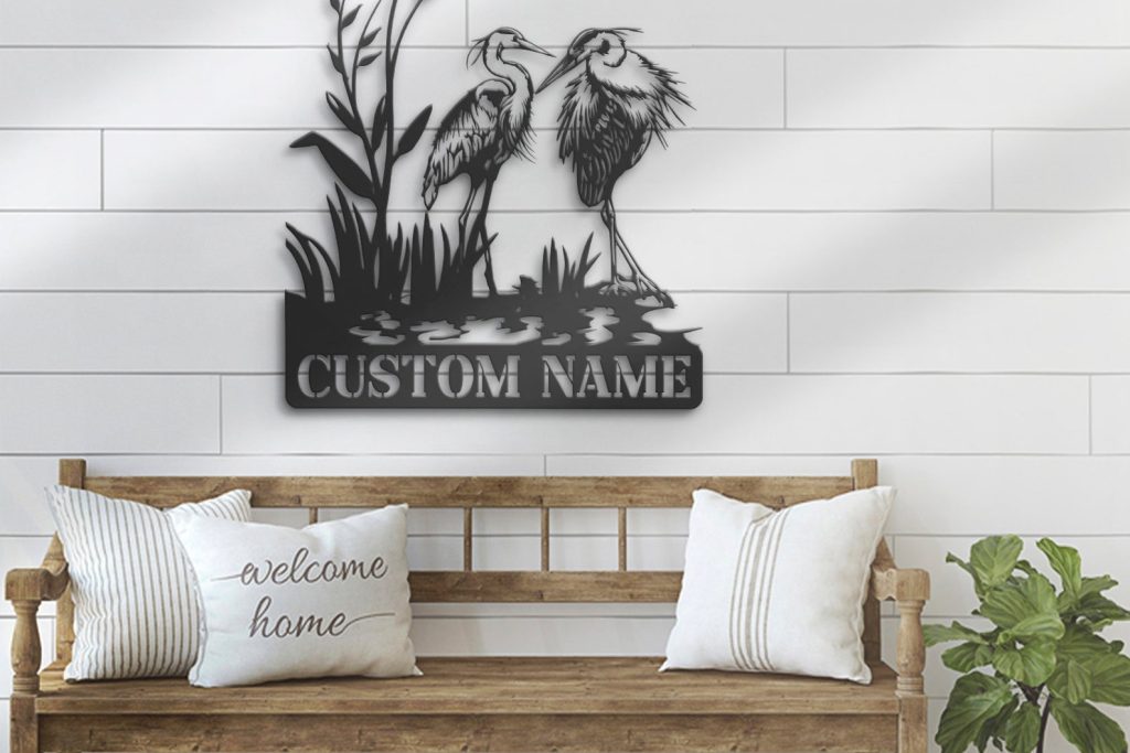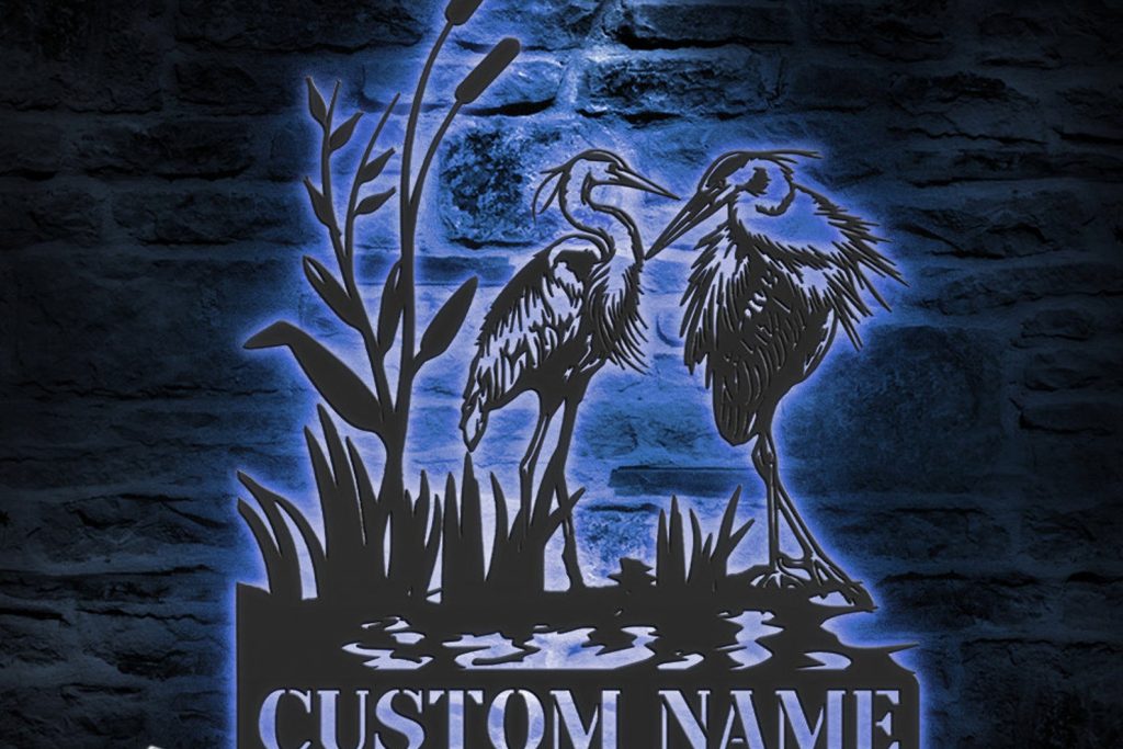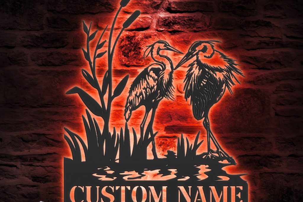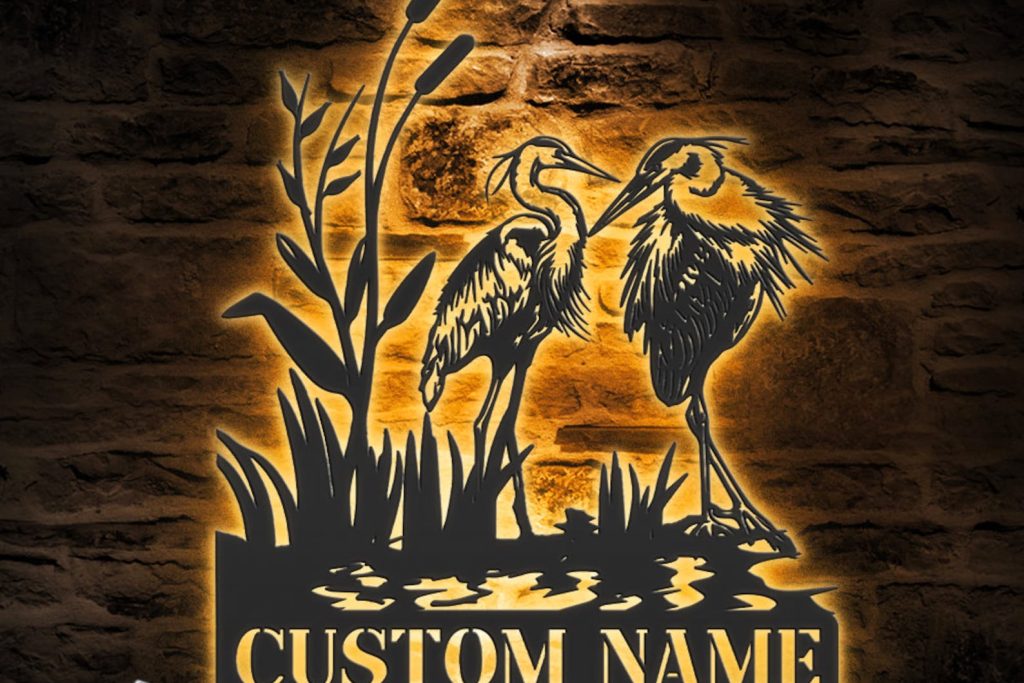 Be the first to review “Custom Heron Couple LED Metal Art – Personalized Family Sign”