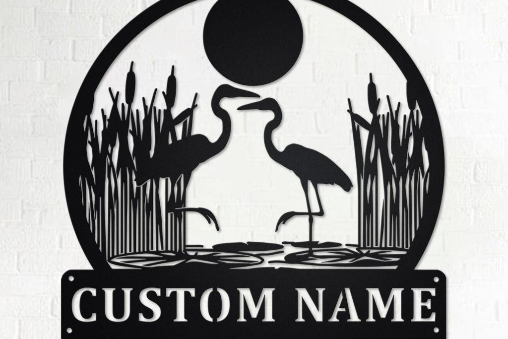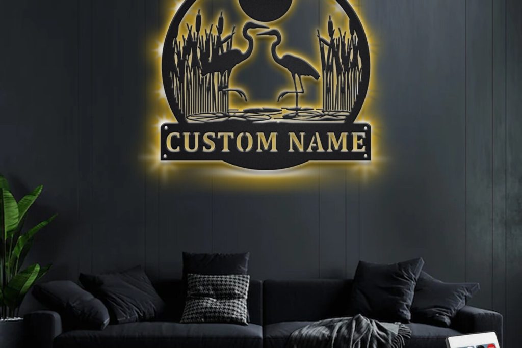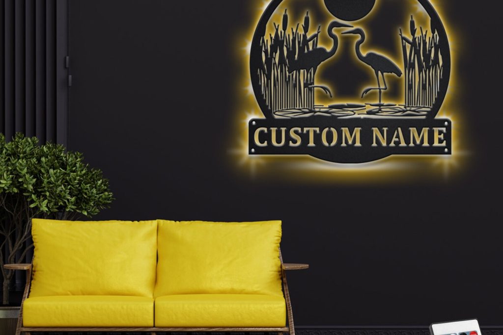 Custom Heron Couple Metal Sign with LED – Room Decoration