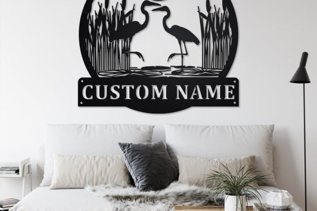 Be the first to review “Custom Heron Couple Metal Sign with LED – Room Decoration”