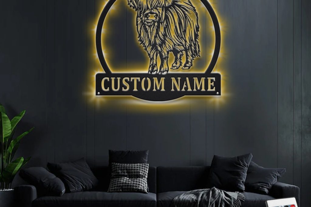 Be the first to review “Custom Highland Cow Metal Sign with LED – Farm Room Decor”