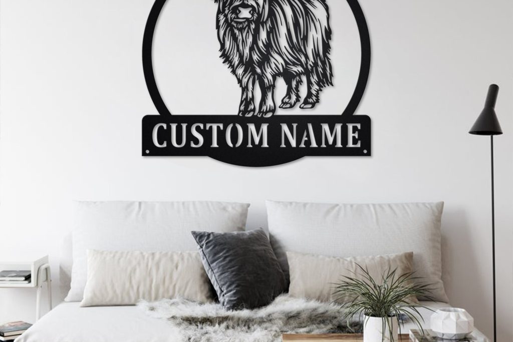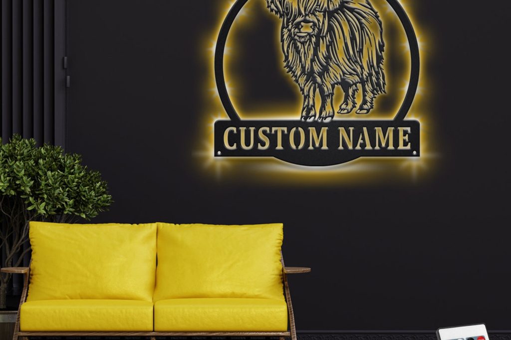 Custom Highland Cow Metal Sign with LED – Farm Room Decor