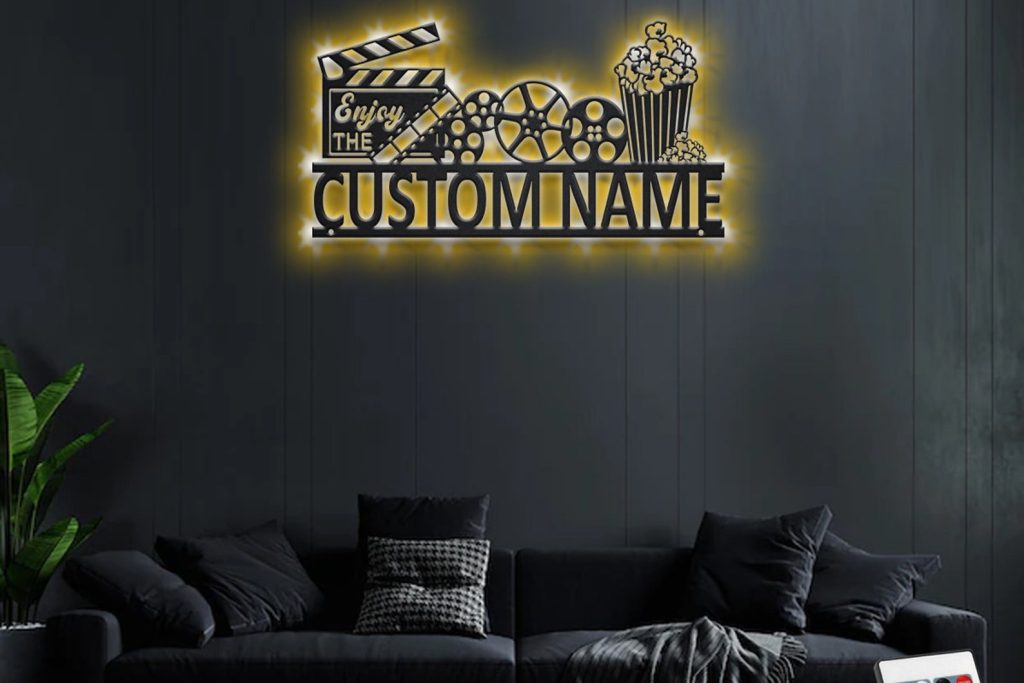 Be the first to review “Custom Home Theater Metal Wall Art with LED”