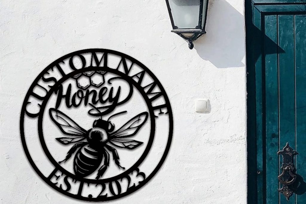 Custom made honey bee metal sign, adding a unique decoration to your garden and the perfect gift for beekeepers.