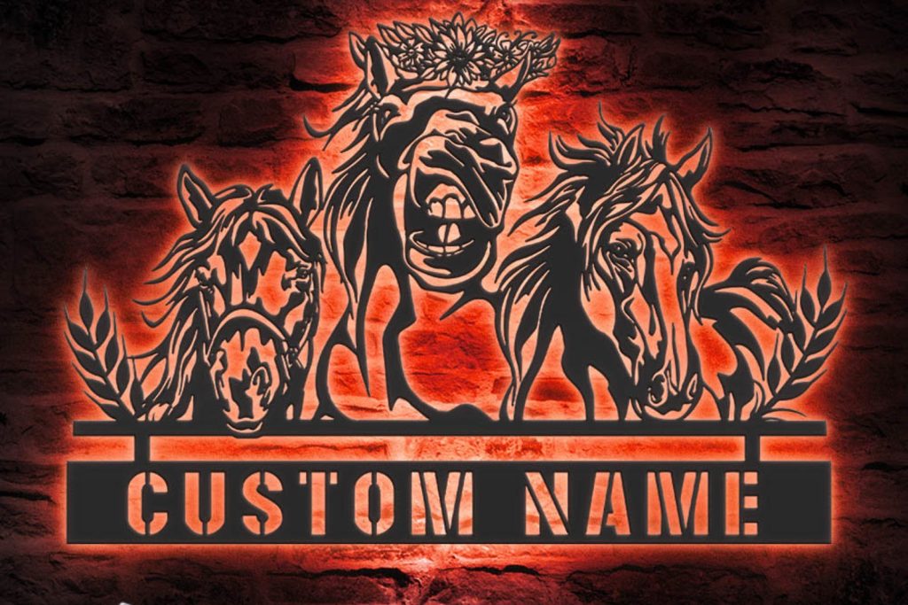 Be the first to review “Custom Horse Farmhouse Metal Sign with LED – Barn Decor”