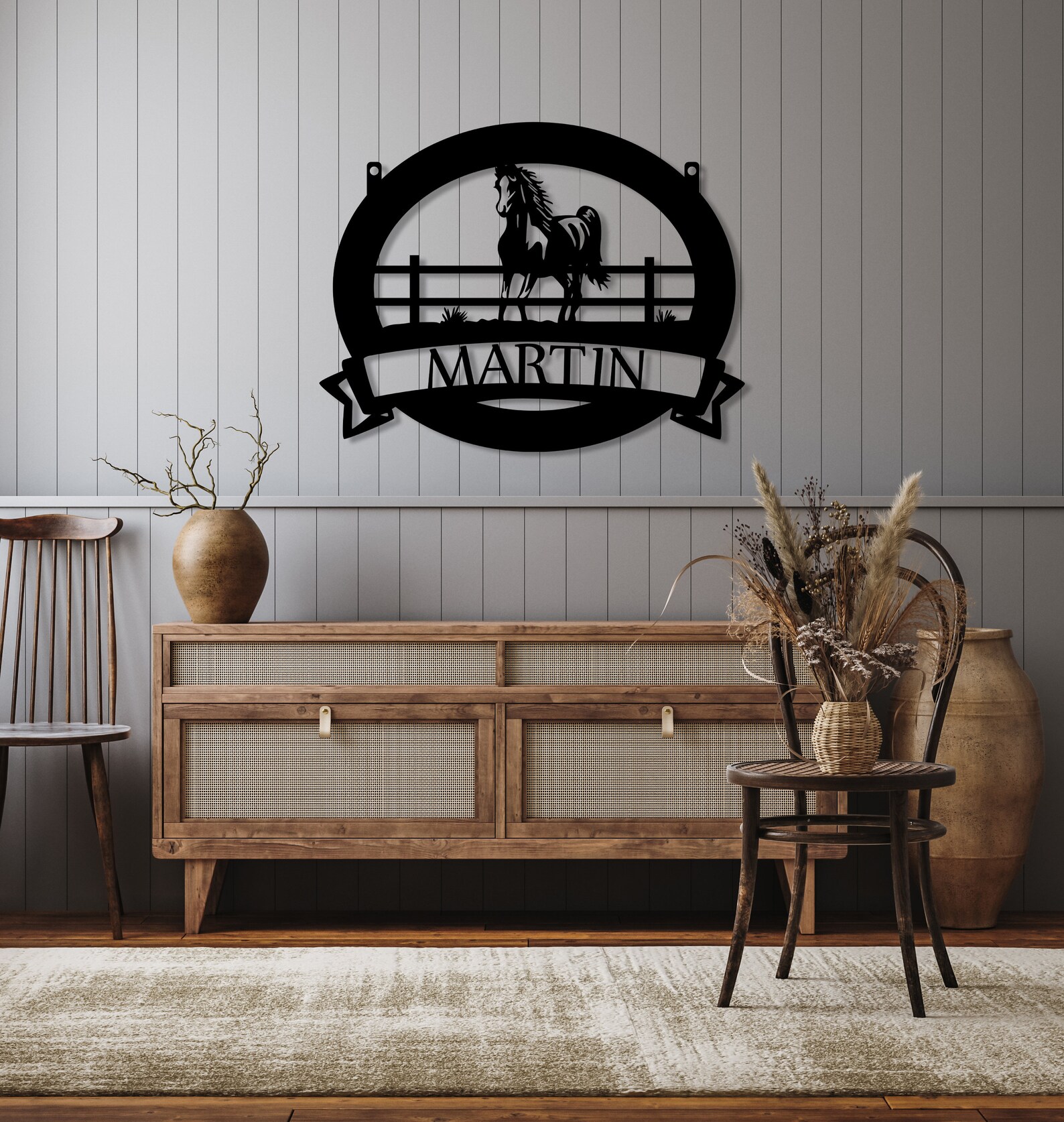 Custom Horse Metal Wall Sign, Personalized Ranch Sign, Entrance Sign, Farm Name Sign, Gate Sign, Large Outdoor Decor, Horse Decor, Home Gift