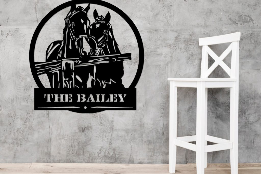 Custom Horse Theme Metal Door Hanger – Equestrian Sign