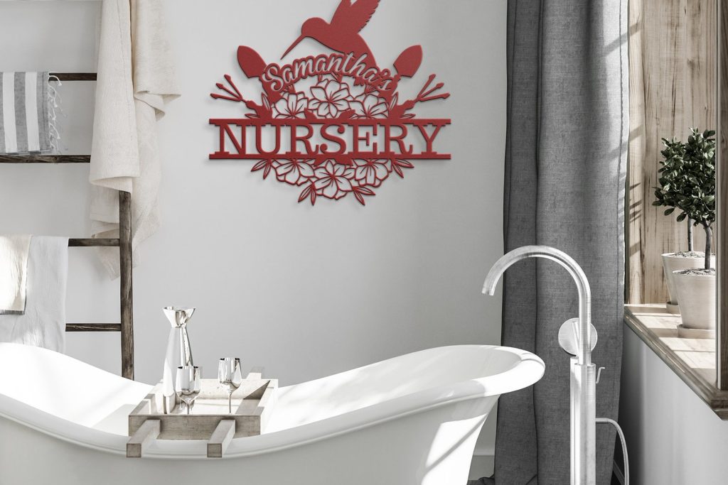 Made with 18 gauge steel and powder coated in your choice of 5 colors, this sign is built to withstand the elements for years of enjoyment. Add a touch of elegance to your home on the inside, outside, or both!