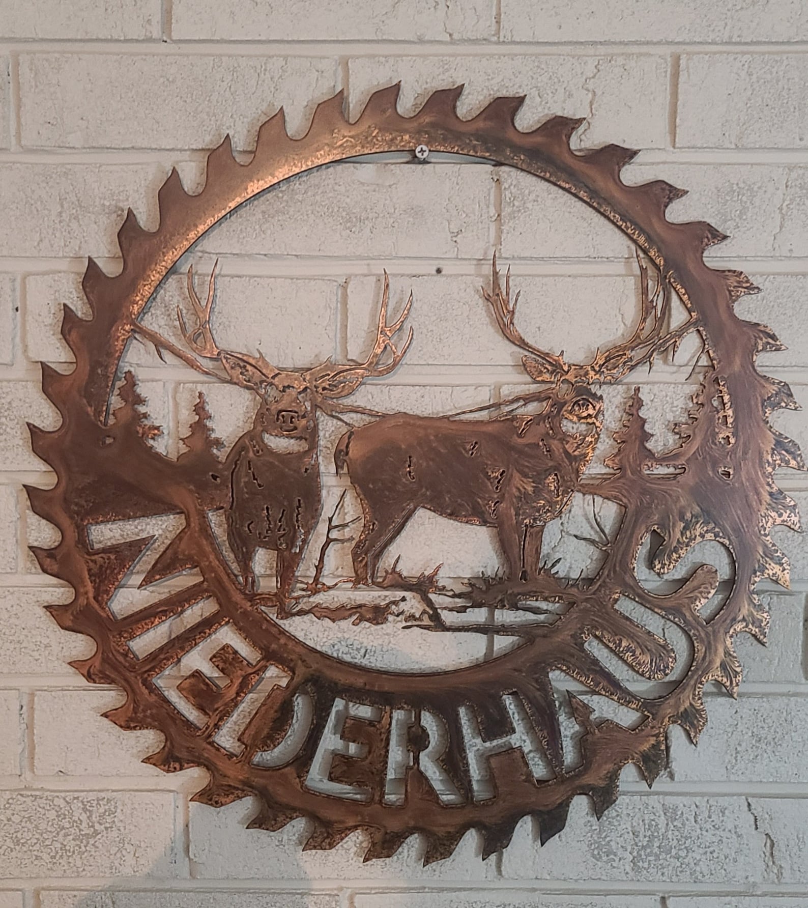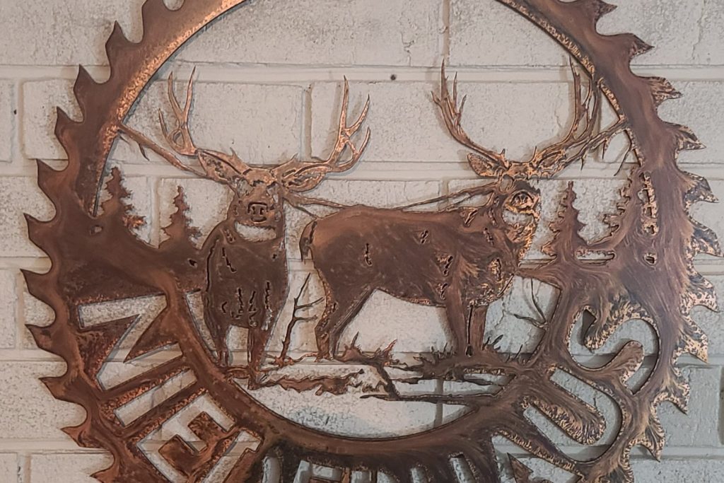 This custom metal personalized monogram sign with elk saw blade can be personalized with your family name or any name you would like. Please be sure to add name in personalization box below!