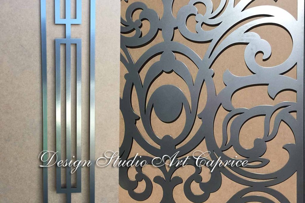 If you are looking for a custom metal cabinet mullion door insert production for your cabinet glass door you can choose any design created by Design Studio Art Caprice for a new sophisticated look of your kitchen/wine cabinet glass doors. Compared to other materials, metal mullion inserts possess a much more luxurious look. It will last for long years as a beautiful part of the interior design.