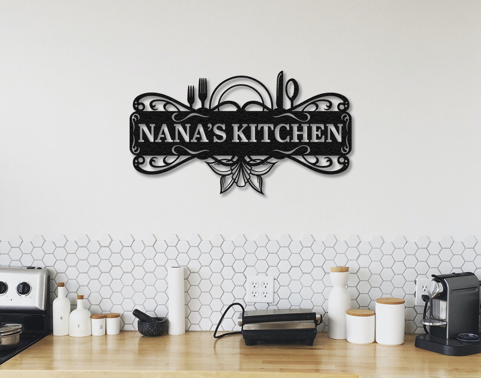 Elevate your kitchen with our custom metal wall art! The perfect personalized/customized gifts for any occasion, this kitchen wall decor adds a touch of style to your dining room. Ideal for kitchen enthusiasts and a thoughtful gift for her, Nana, or as a Mothers Day gift. Explore our kitchen signs today!