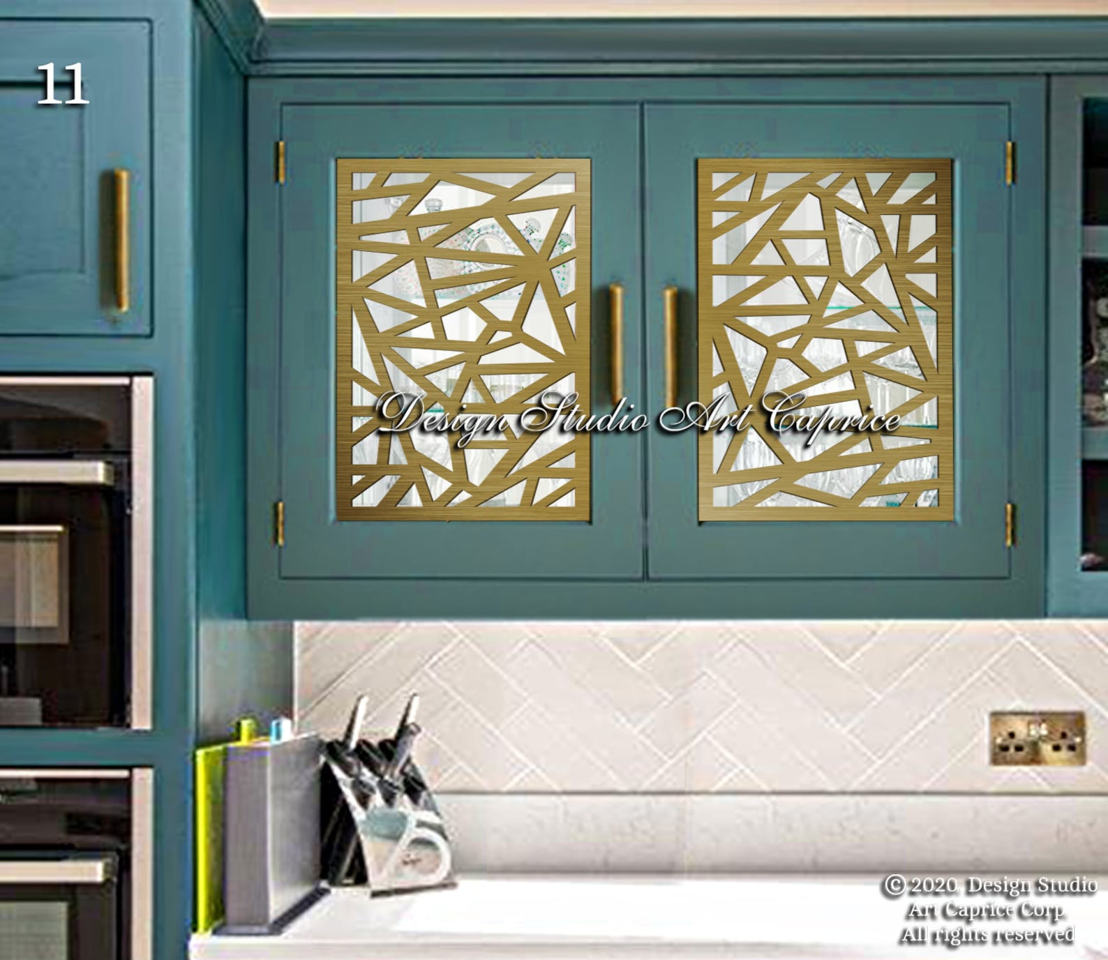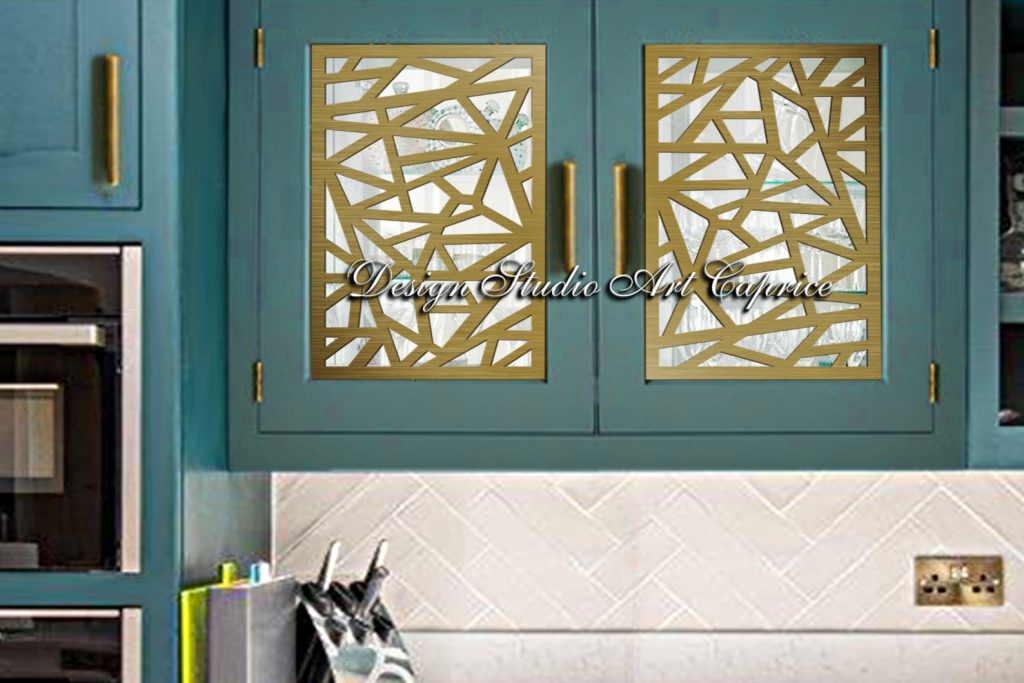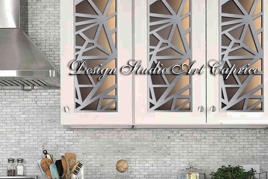 If you are looking for a custom metal mullion production for your cabinet glass door you can choose any design created by Design Studio Art Caprice for a new sophisticated look of your kitchen/wine cabinet glass doors. Compared to other materials, metal mullion inserts possess a much more luxurious look. It will last for long years as a beautiful part of the interior design.