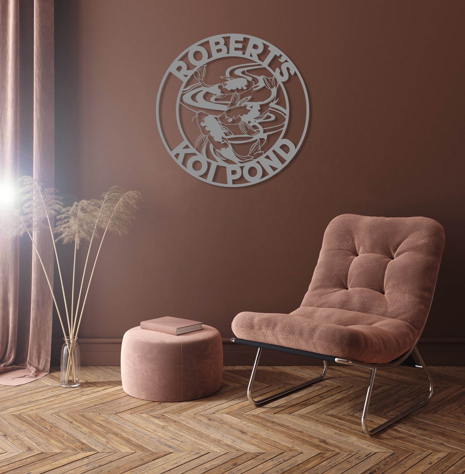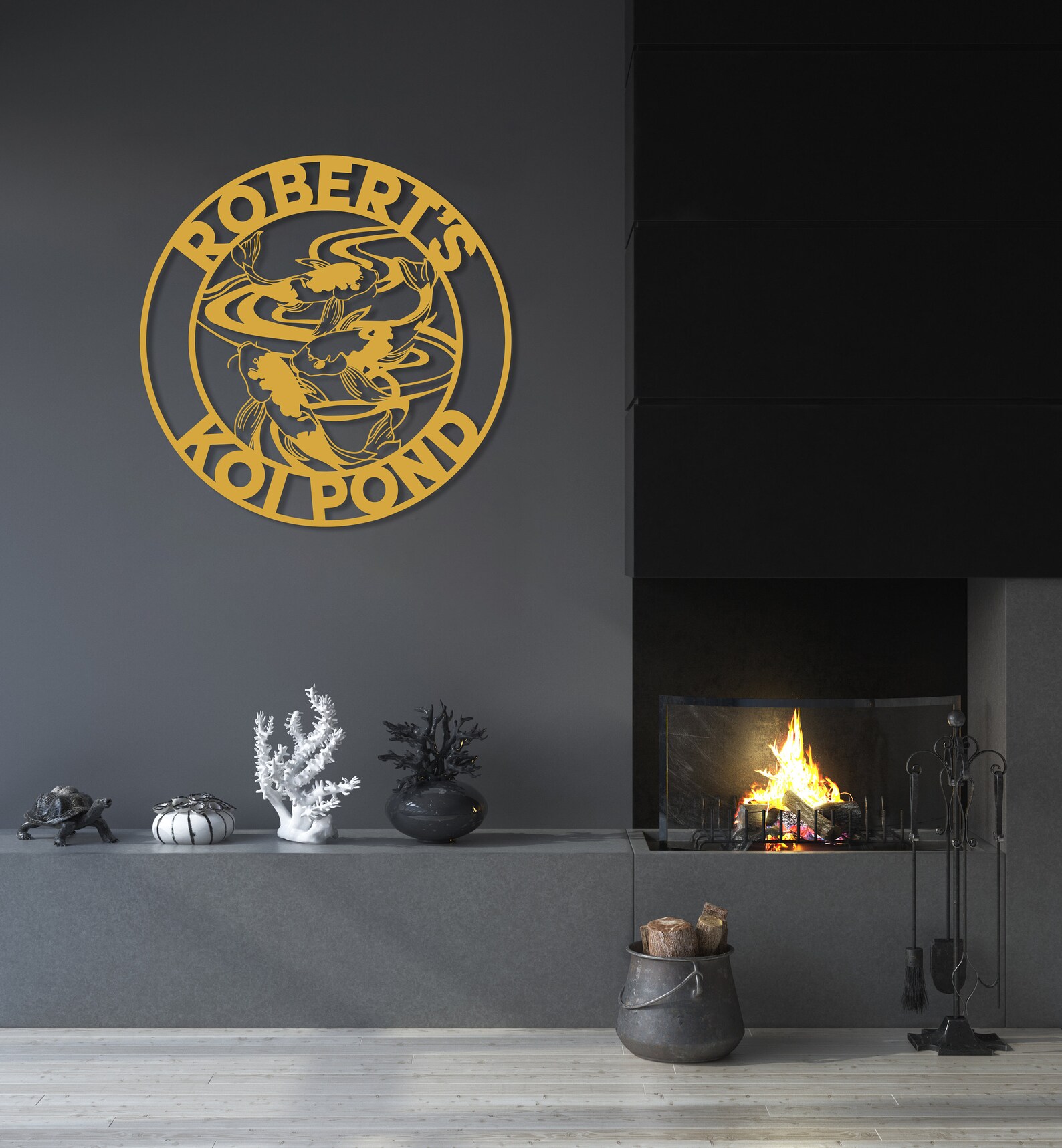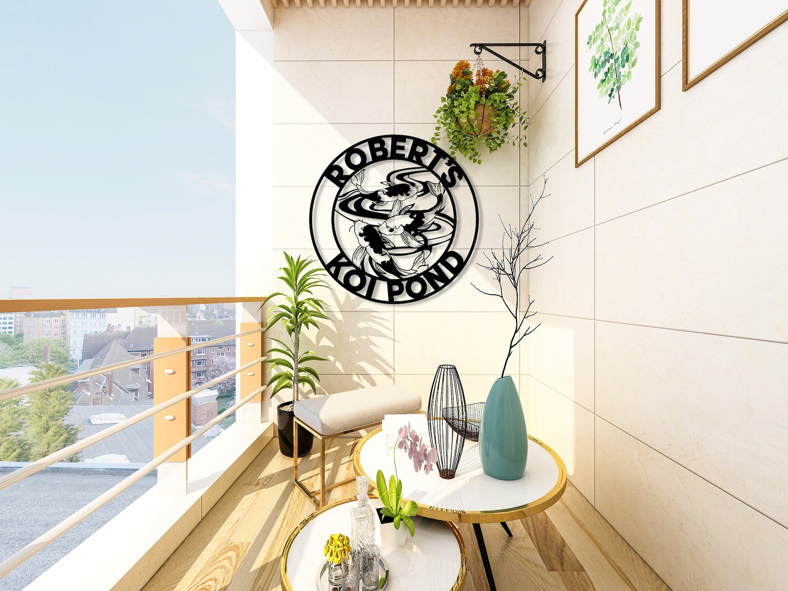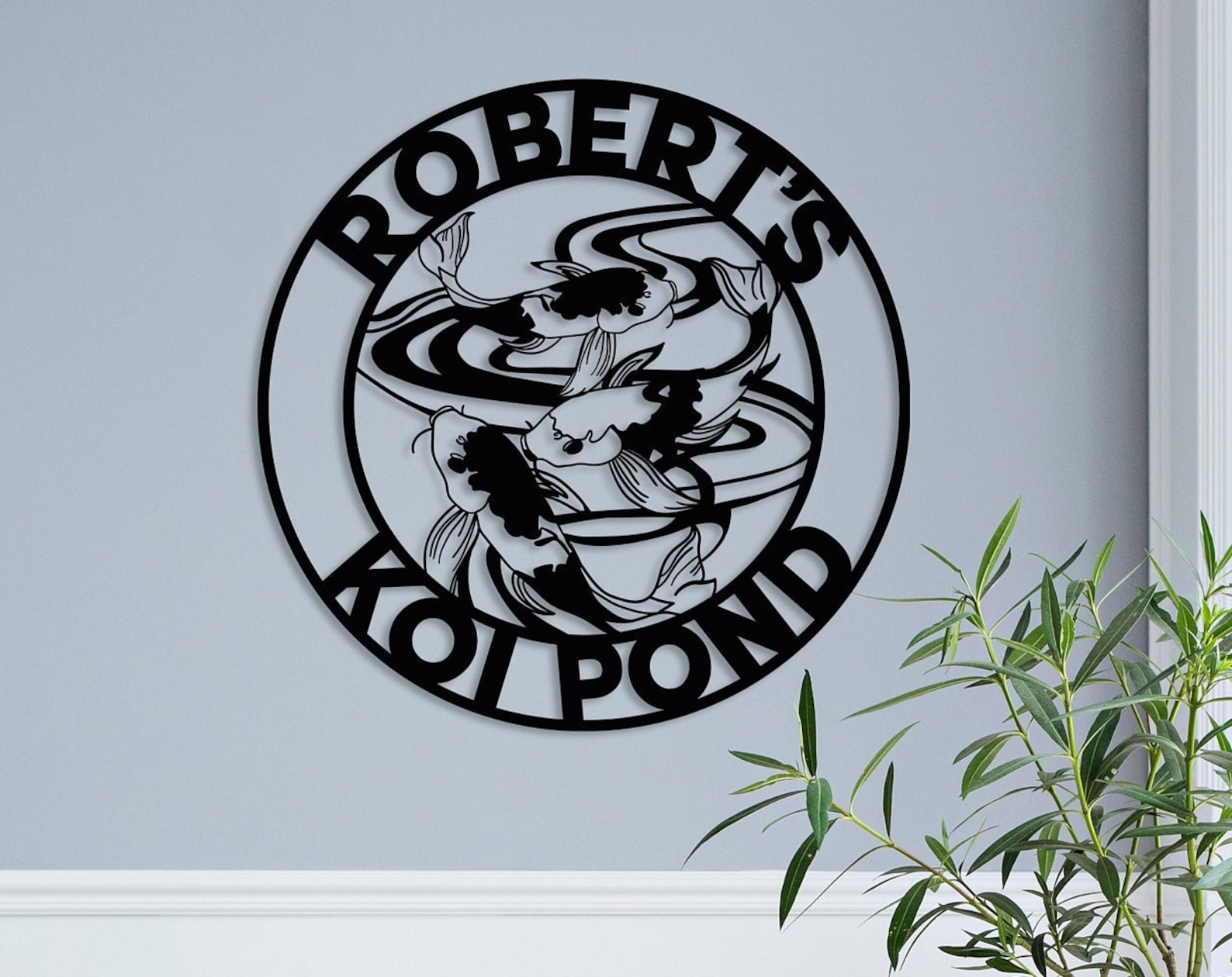 Custom Koi Fish Metal Wall Art, Personalized Name Sign, Meditation Wall Decor, Unique Design Wall Sign, Large Outdoor Decor,Balcony Wall Art