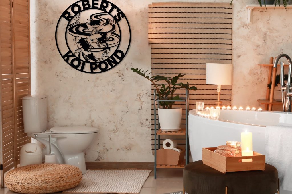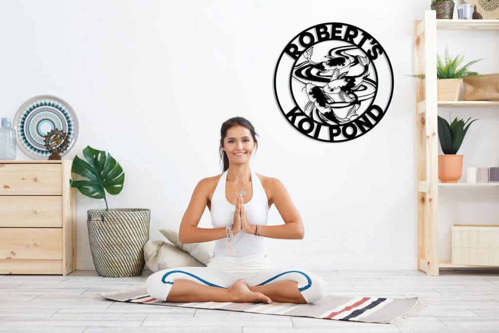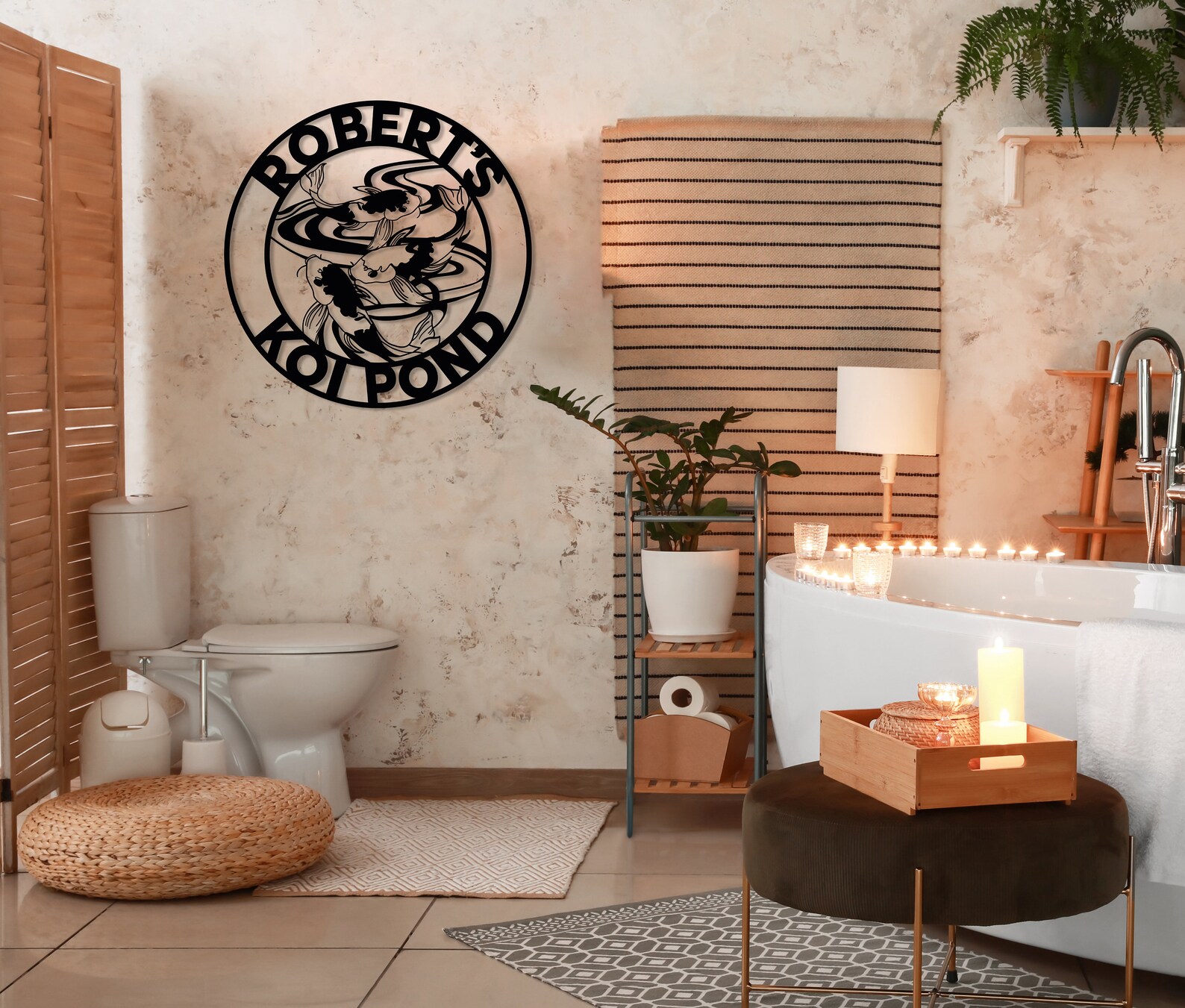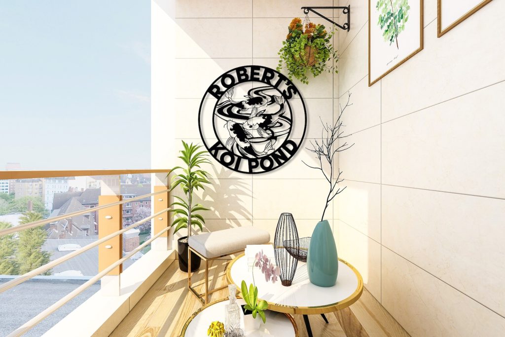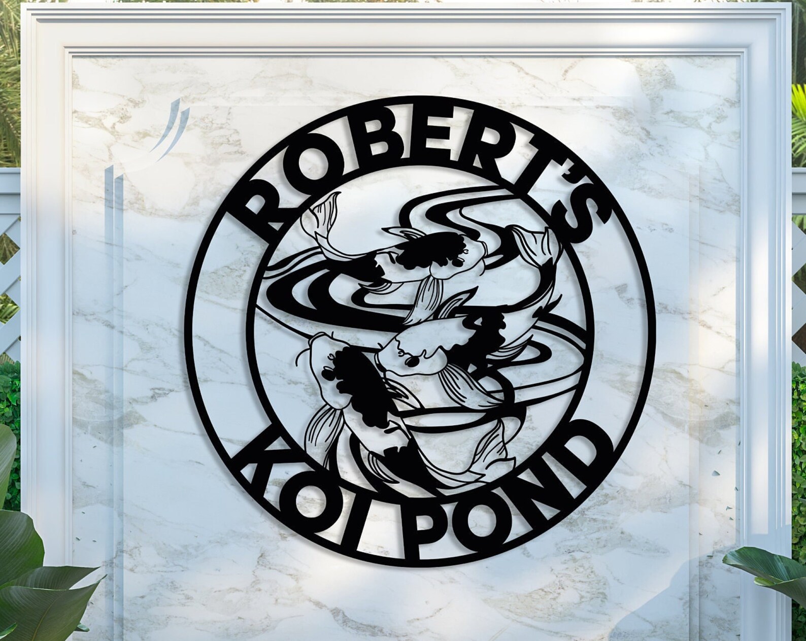 Custom Koi Fish Metal Wall Art, Personalized Name Sign, Meditation Wall Decor, Unique Design Wall Sign, Large Outdoor Decor,Balcony Wall Art