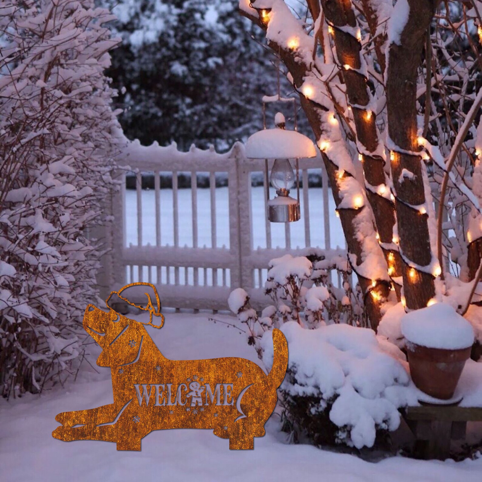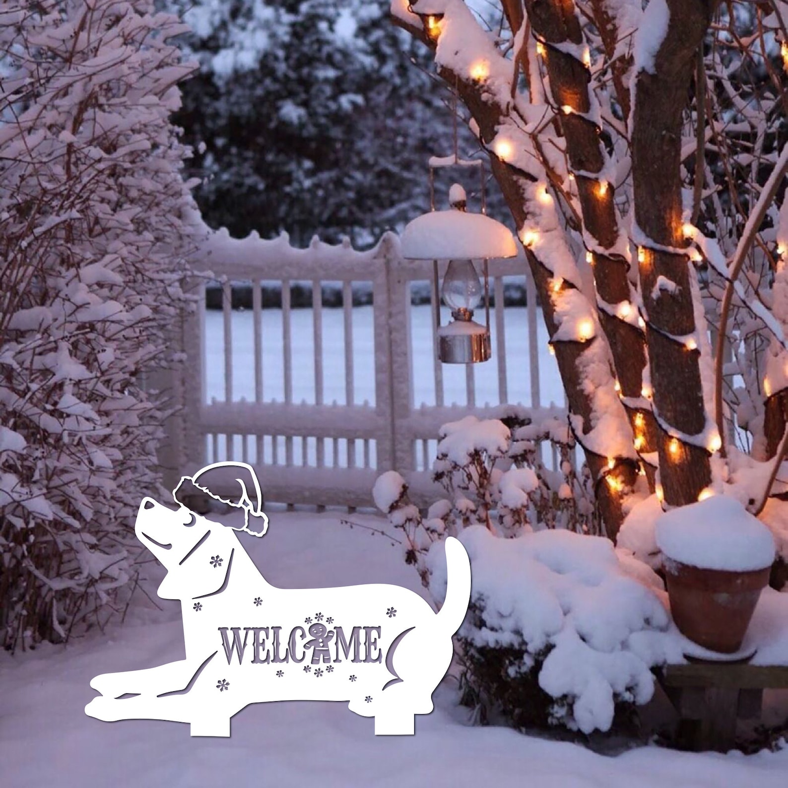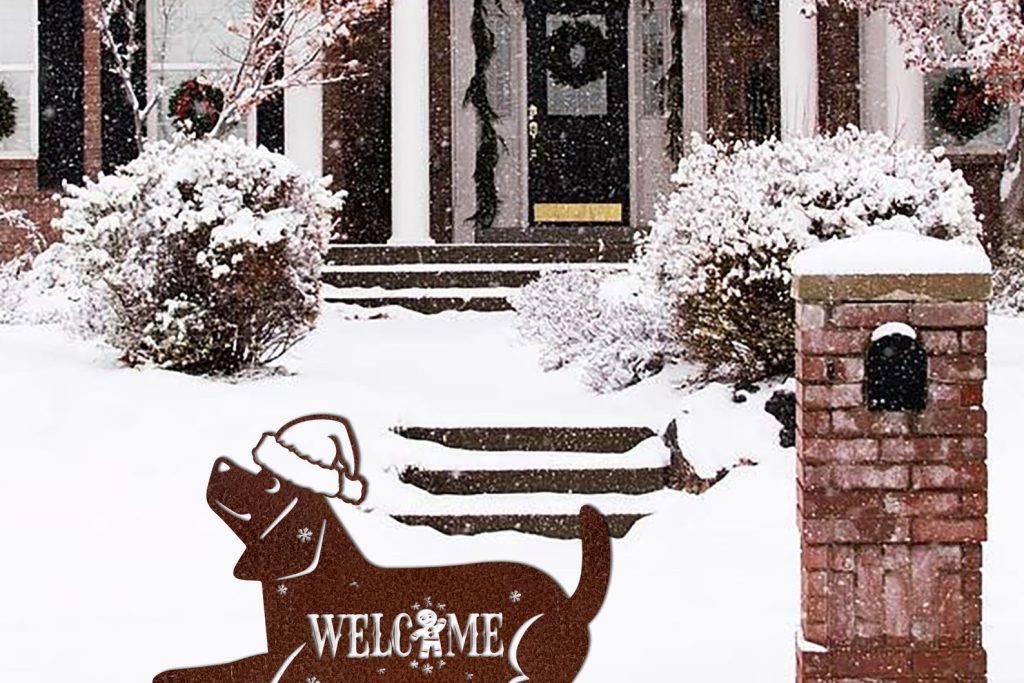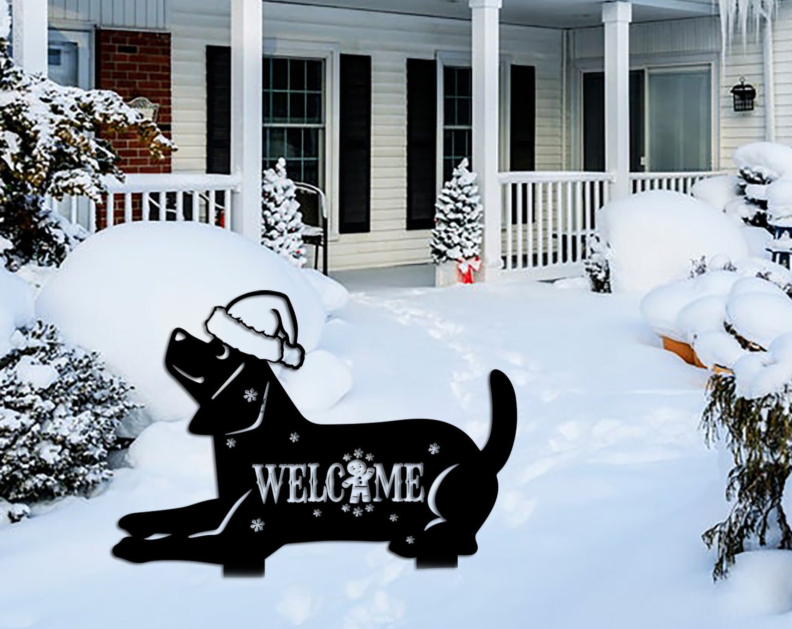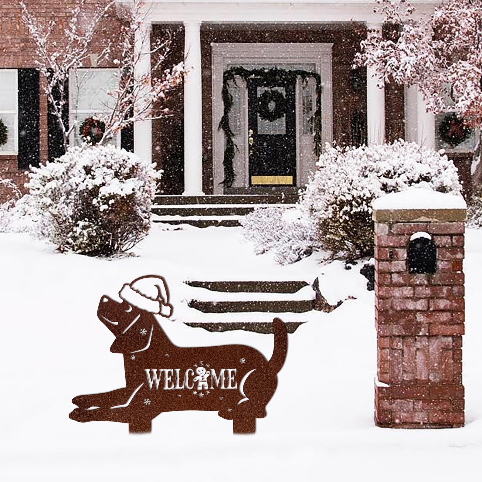 Christmas Dog Sign, Christmas Decor, Labrador Metal Sign, Rusty Metal Stake, Vintage Sign, Holiday Gift, Yard Decoration, Christmas Yard Art, Meaningful Christmas decorations, Christmas gifts, family gifts, Labrador pet lovers, metal signs for animals.