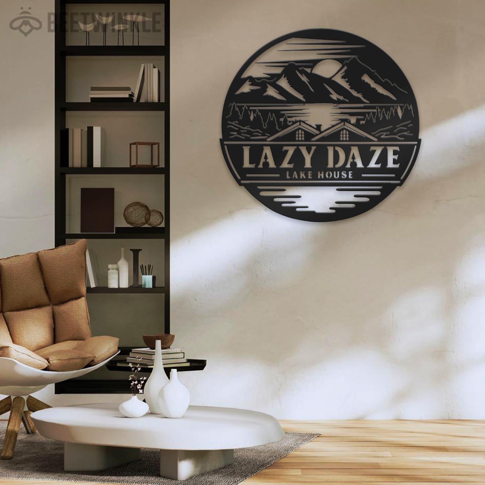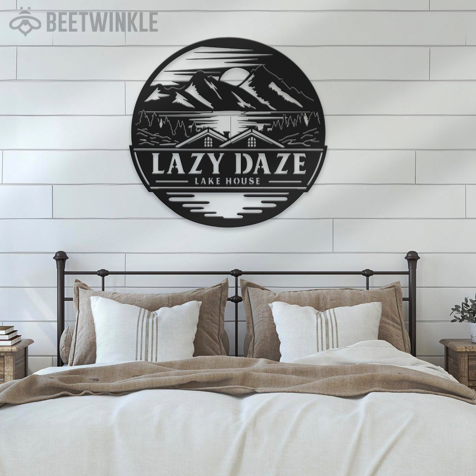 Custom Lake House Metal Art with LED Light