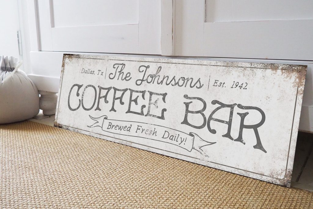 coffee bar signtcoffee stationtcoffee bar decortfarmhouse wall decortcustom sign last momtpersonalized vintagetcanvas family rustictcustomized name gifttfather mother frenchthousewarming moderntfarmers market decortcountry coffee shoptlarge coffee sign