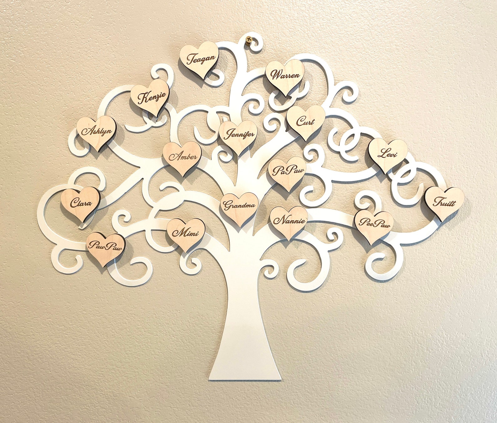 This unique and beautiful family tree will fit great with any home decor. Whether it9;s a gift for your parents or grandparents, or a present for mom, this personalized family tree will celebrate those closest to you and honor those who came before you. We use only the best materials to guarantee ellent quality and beauty that will insure this family heirloom will last for generations.