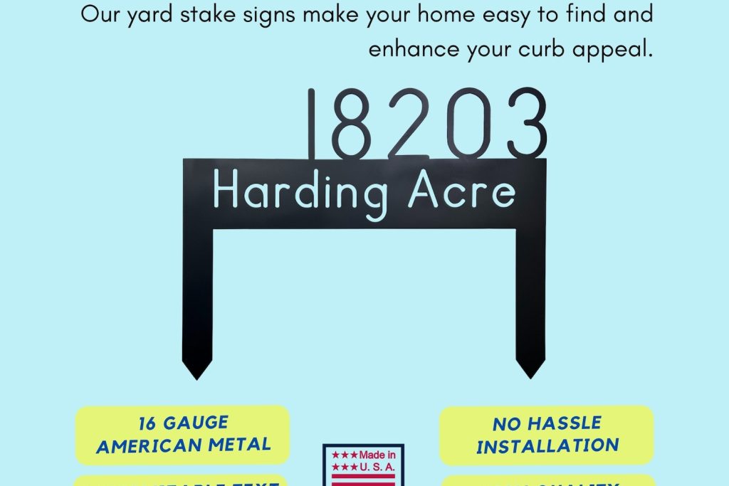 Custom Lawn Address Sign, Metal Yard Sign with Stakes, House Numbers for Yard, Made in USA