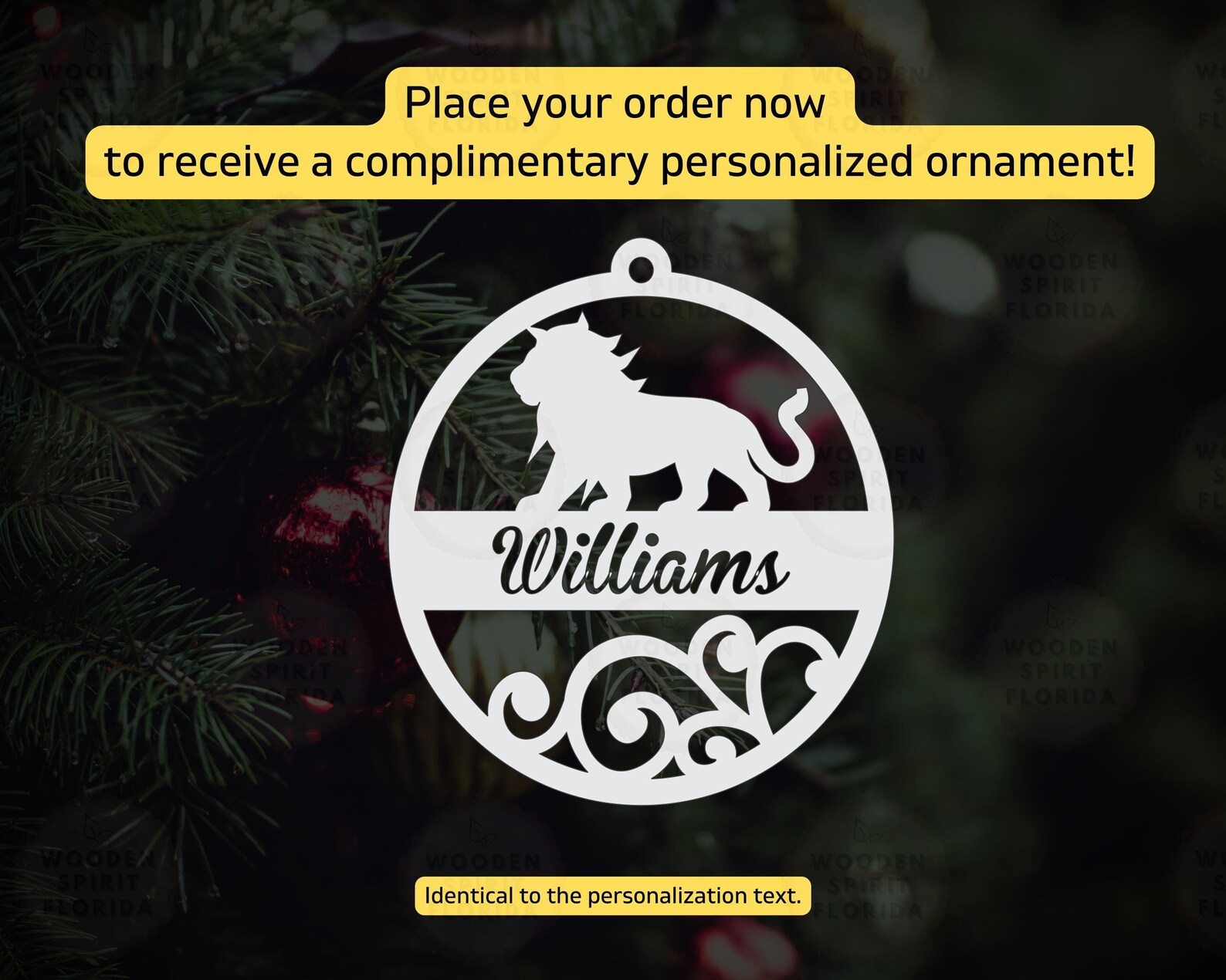 Complement your purchase with a FREE ornament, tailored to match the personalized text of your order.