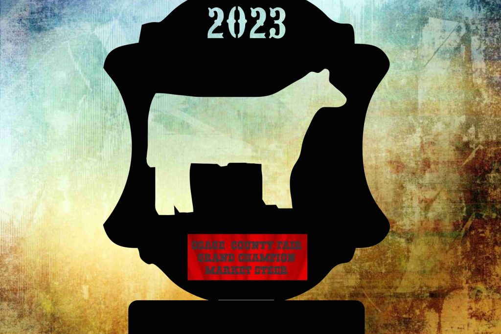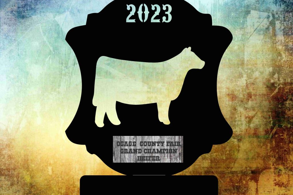 Livestock Award. This listing is for one 15" or 18" tall metal plasma cut standup livestock award with your information applied with a vinyl decal. There is a picture with the choices of animals. It will be shipped flat ready to bend to make them standup.