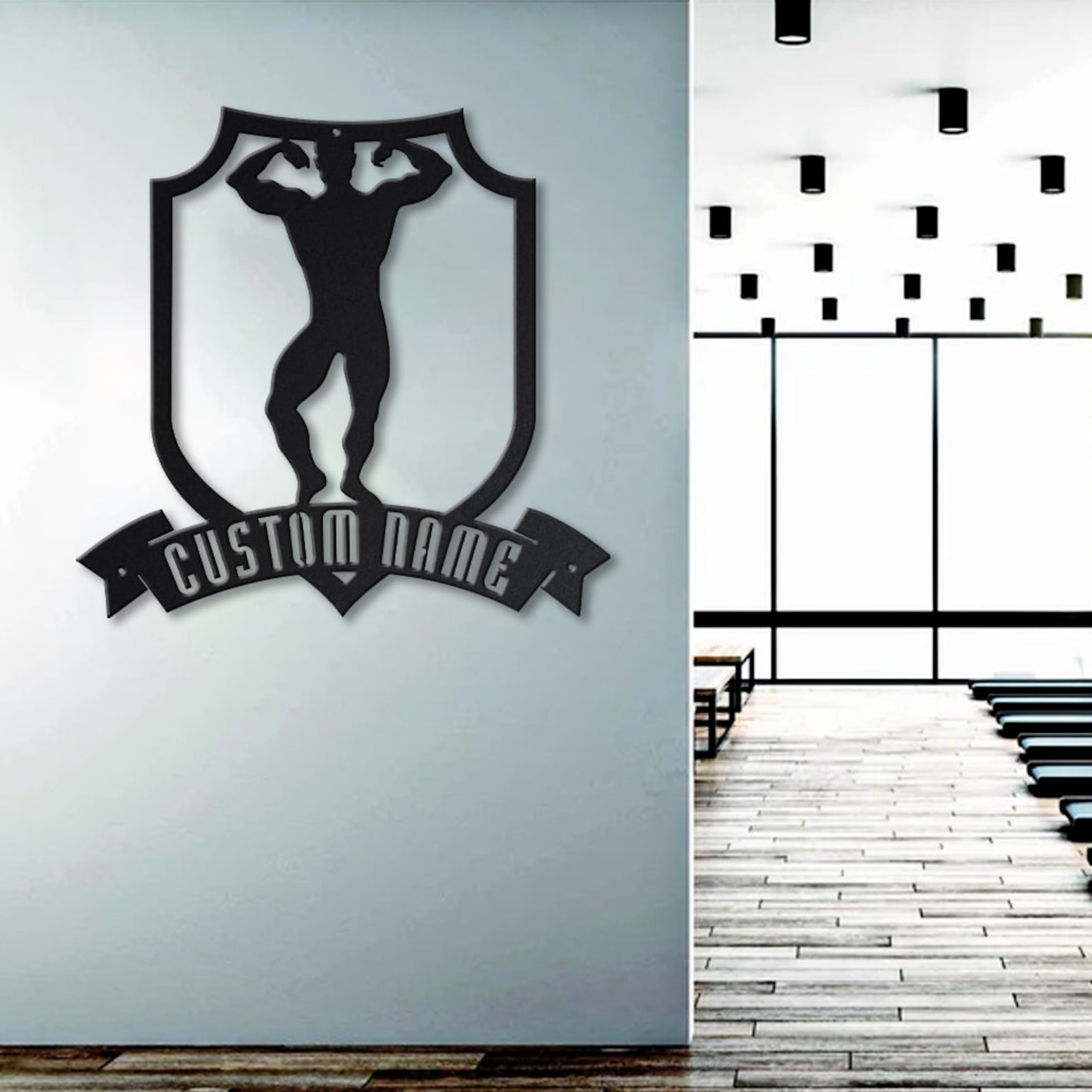 Be the first to review “Custom Male Bodybuilder Metal Sign with LED V3 – Gym Decor”