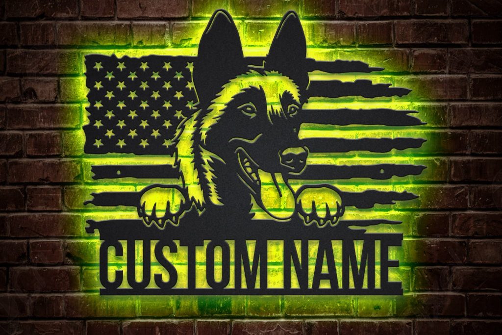 Custom Malinois Dog Metal Wall Art – LED Lights, Dog Decor